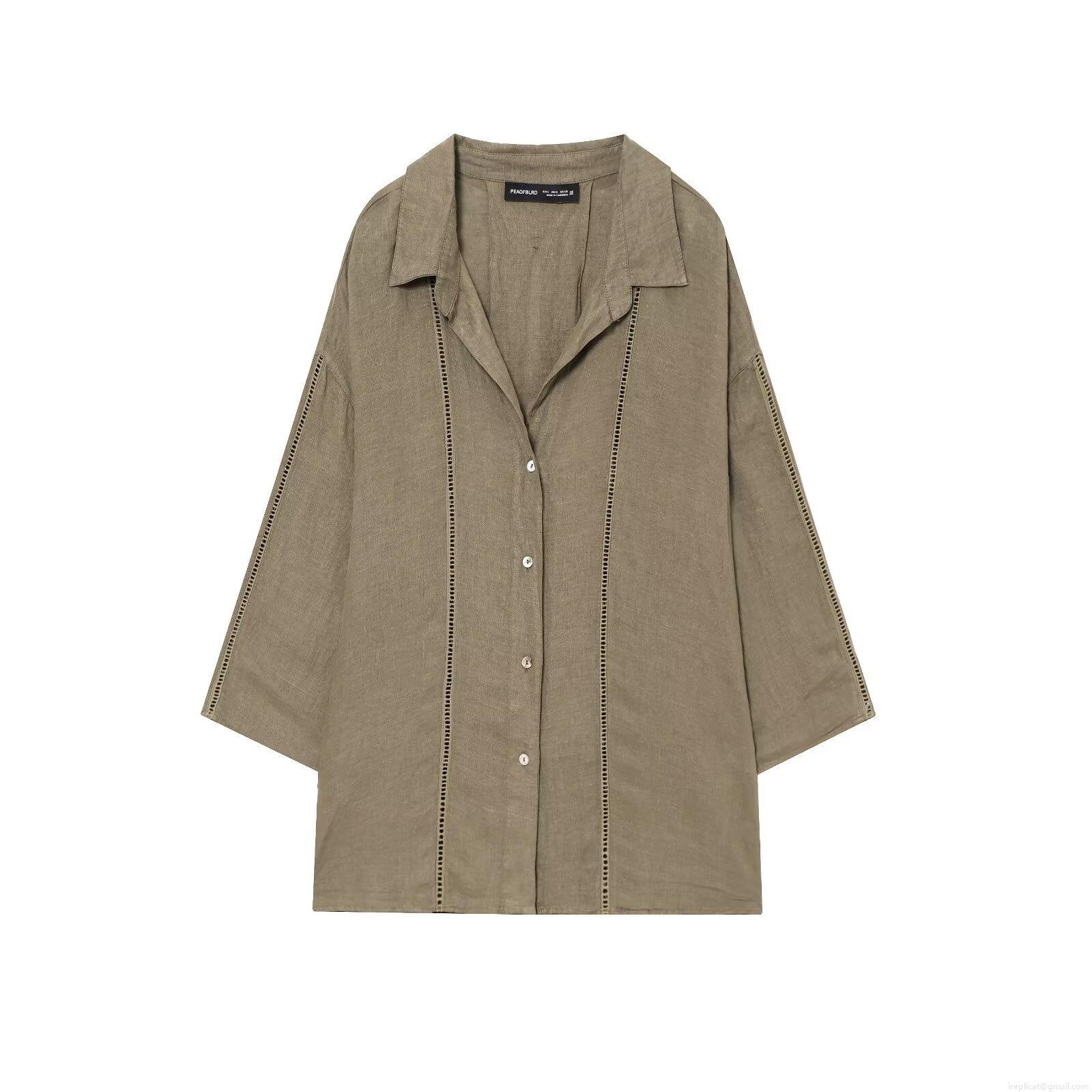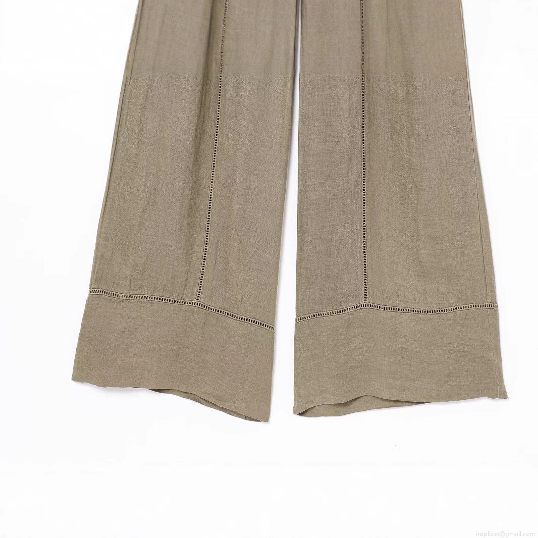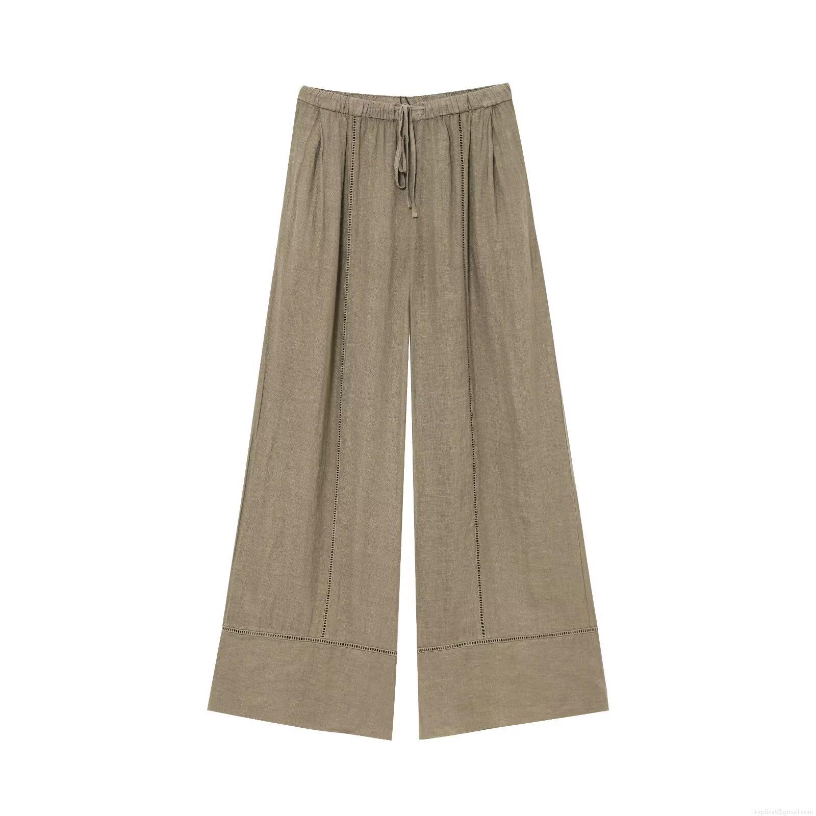 • Women's Linen Cotton Blend Two Piece Set Hollow Out Embroidery V Neck Shirt Drawstring Wide Leg Pants Casual Summer Vacation Streetwear Outfit