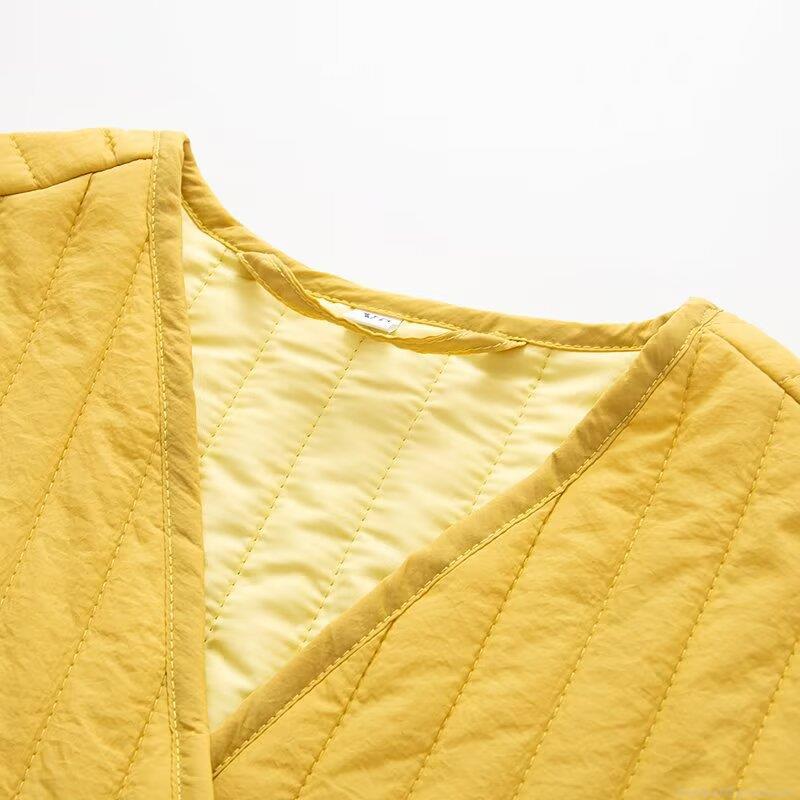 Solid Color, Quilting, Drawstring, Quilted Texture, Kimono Collar, Side Fretting