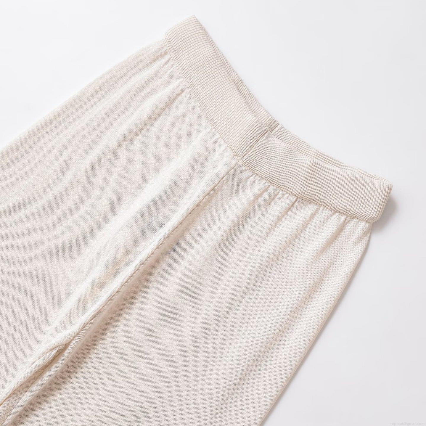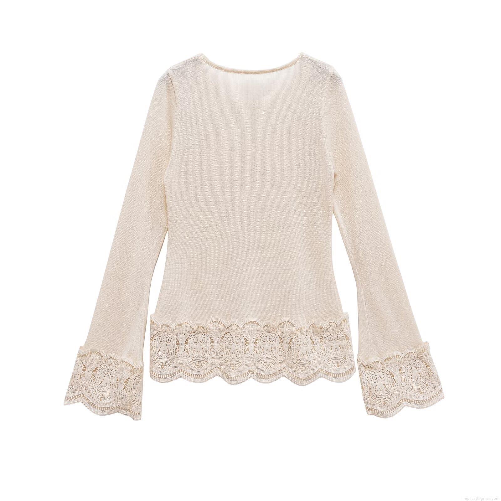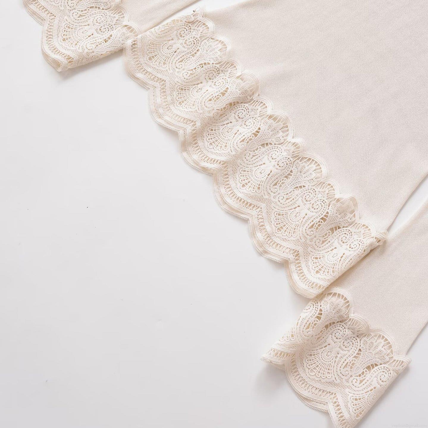 • Women Elegant Cream Knit Loungewear Set French Vintage Lace Patchwork Long Sleeve Round Neck Top and High Waist Long Pants 2 Piece Casual Home Suit
