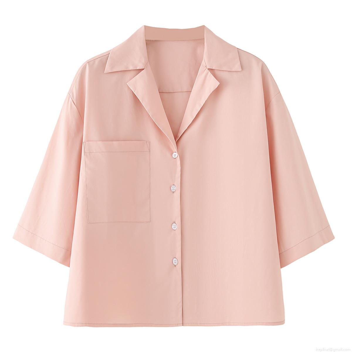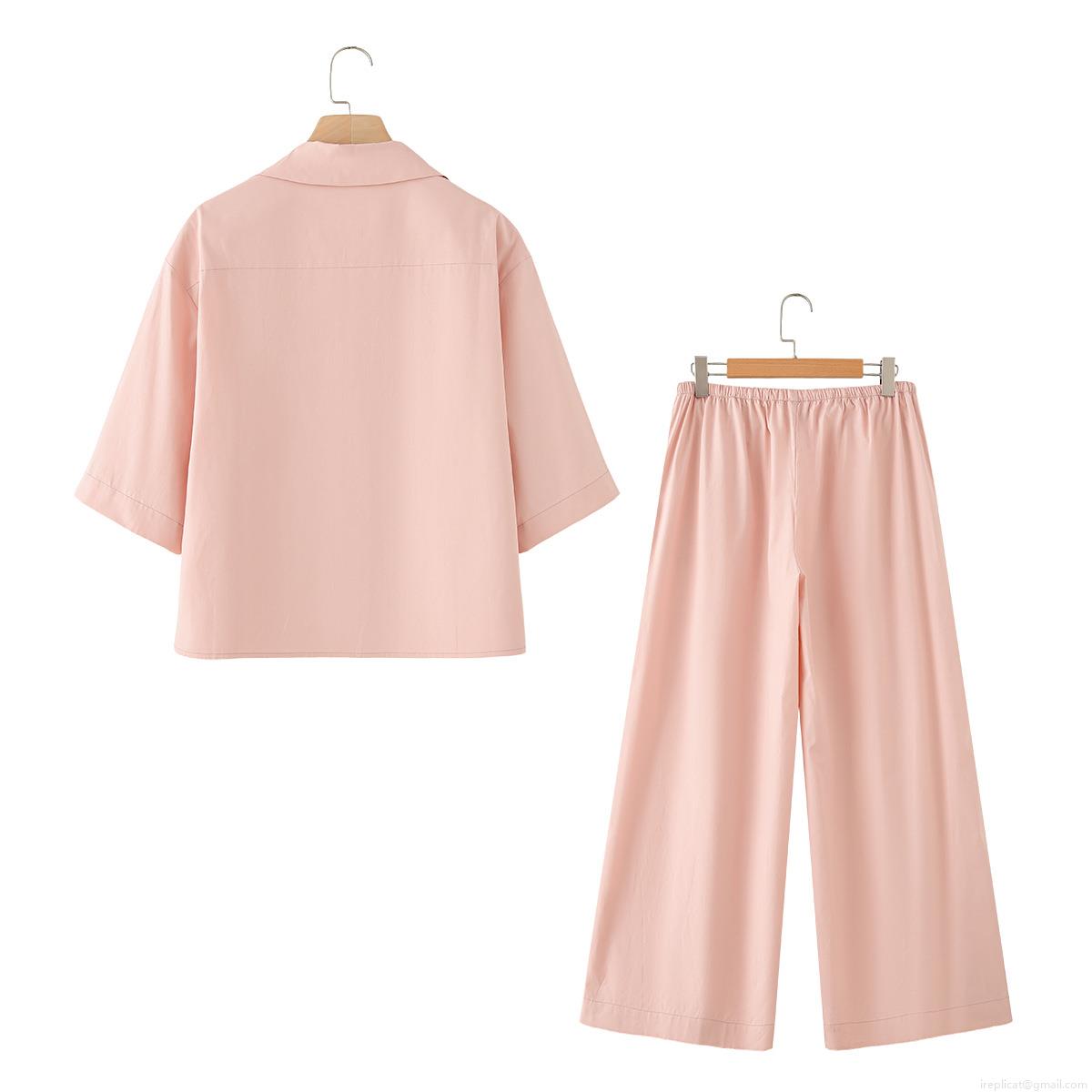 • Women's 100% Cotton Two Piece Set Short Sleeve Lapel Button Up Shirt And High Waist Wide Leg Pants Loungewear Casual Loose Pajama Set Summer Clothing