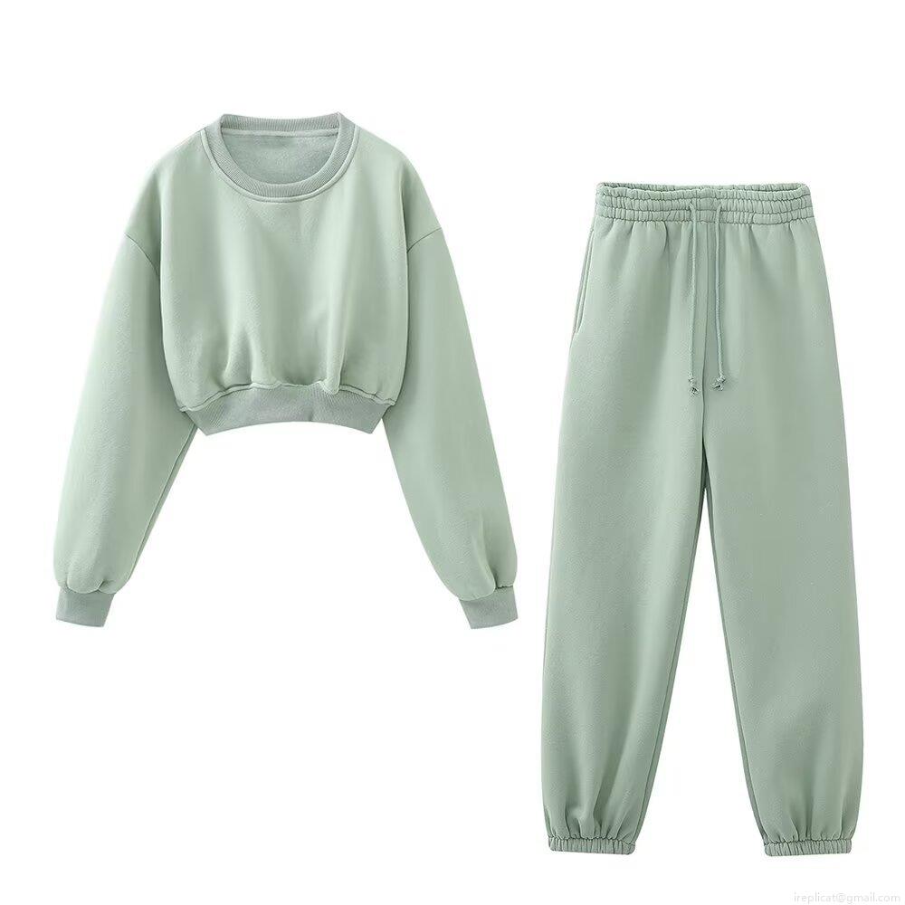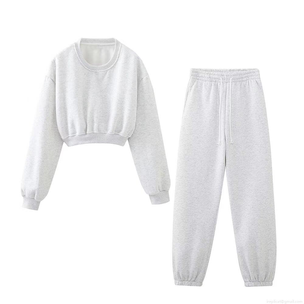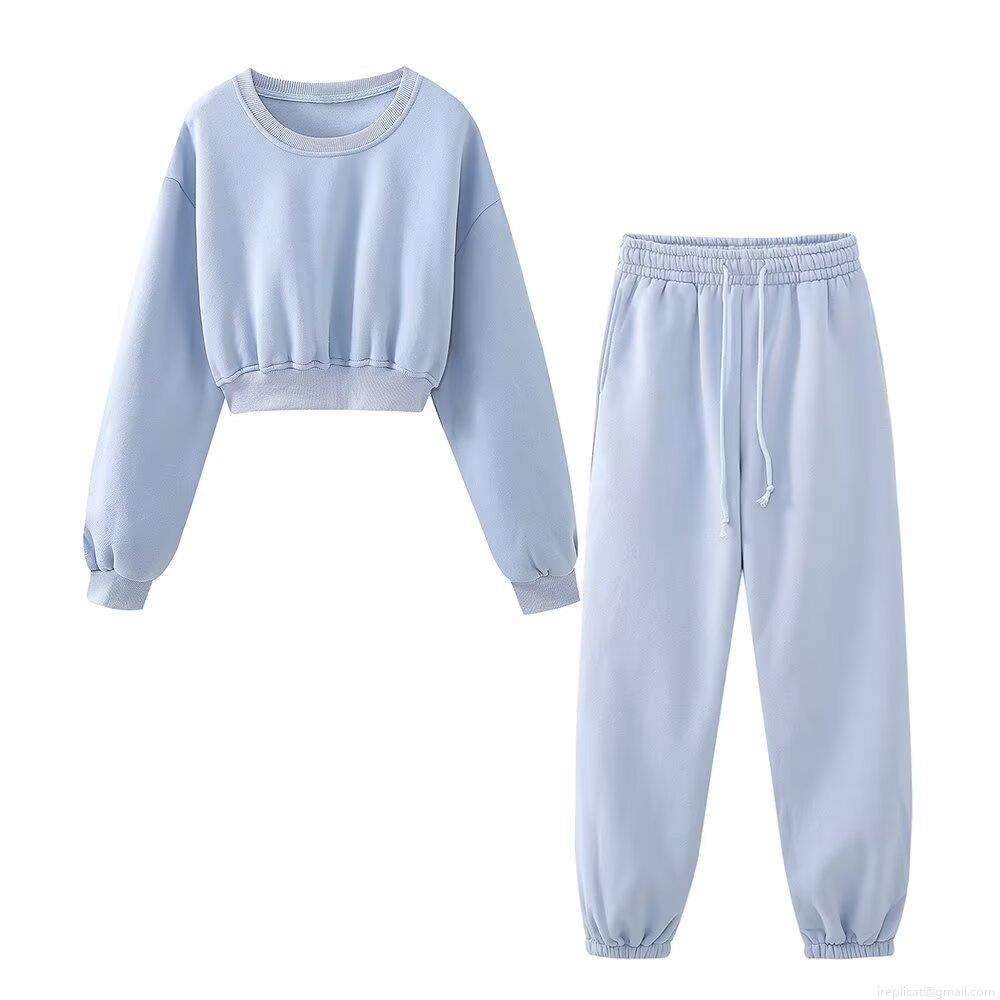 • Women's 2 Piece Casual Lounge Set Cropped Long Sleeve Sweatshirt And Drawstring High Waist Jogger Pants Polyester Blend Solid Color Tracksuit Streetwear Outfits