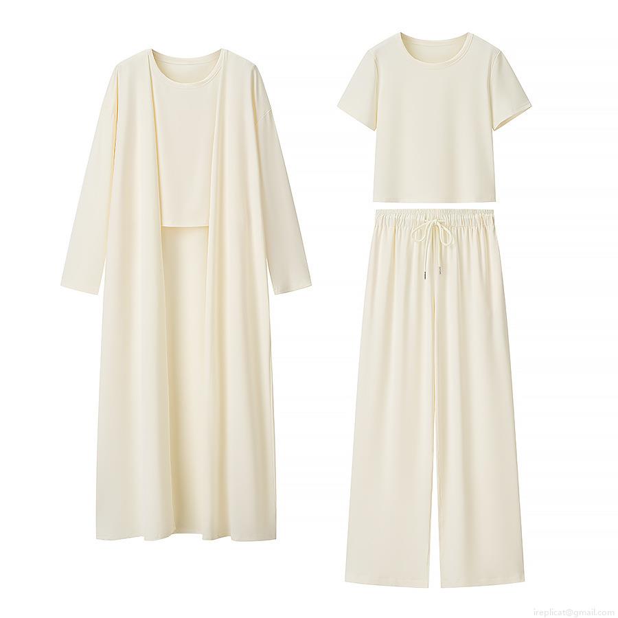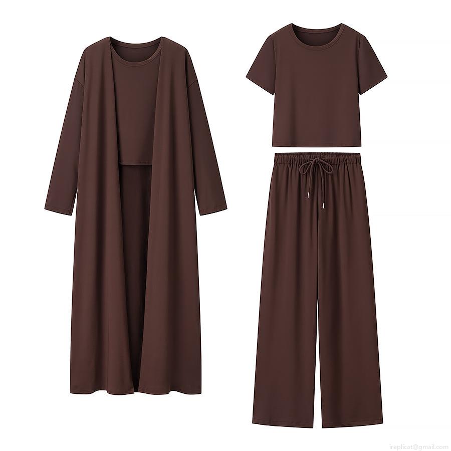 • Women's 3-Piece Knitted Loungewear Set 100% Polyester Long Cardigan Open Front Coat Short Sleeve T-Shirt And Drawstring Wide Leg Pants Casual Streetwear Outfits