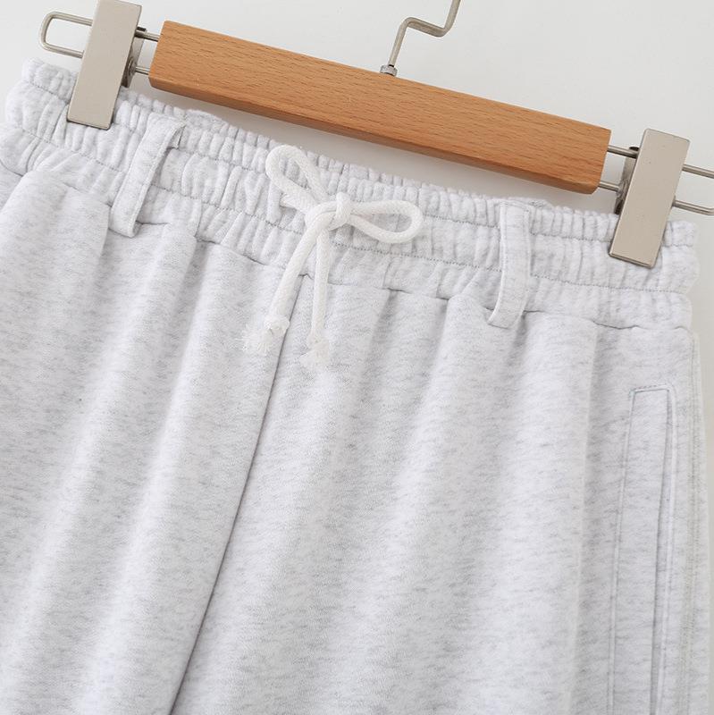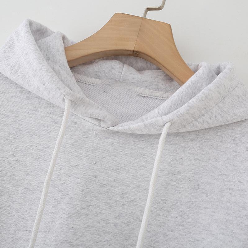 • Women's 99% Cotton Soft Grey Knit Hoodie and Wide Leg Pants Set Raw Hem Casual Long Sleeve Loungewear Two-Piece Suit With Kangaroo Pocket