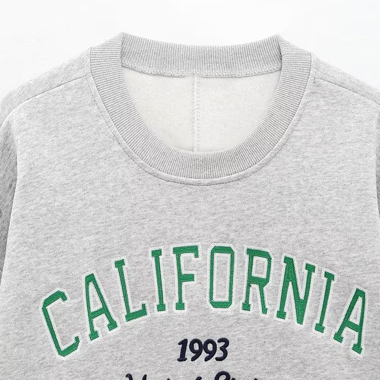 Women's Casual Cotton Blend Letter Embroidery Sweatshirt And Sweatpants Set Two Piece Outfits For Sporty Daily Loungewear Autumn Winter