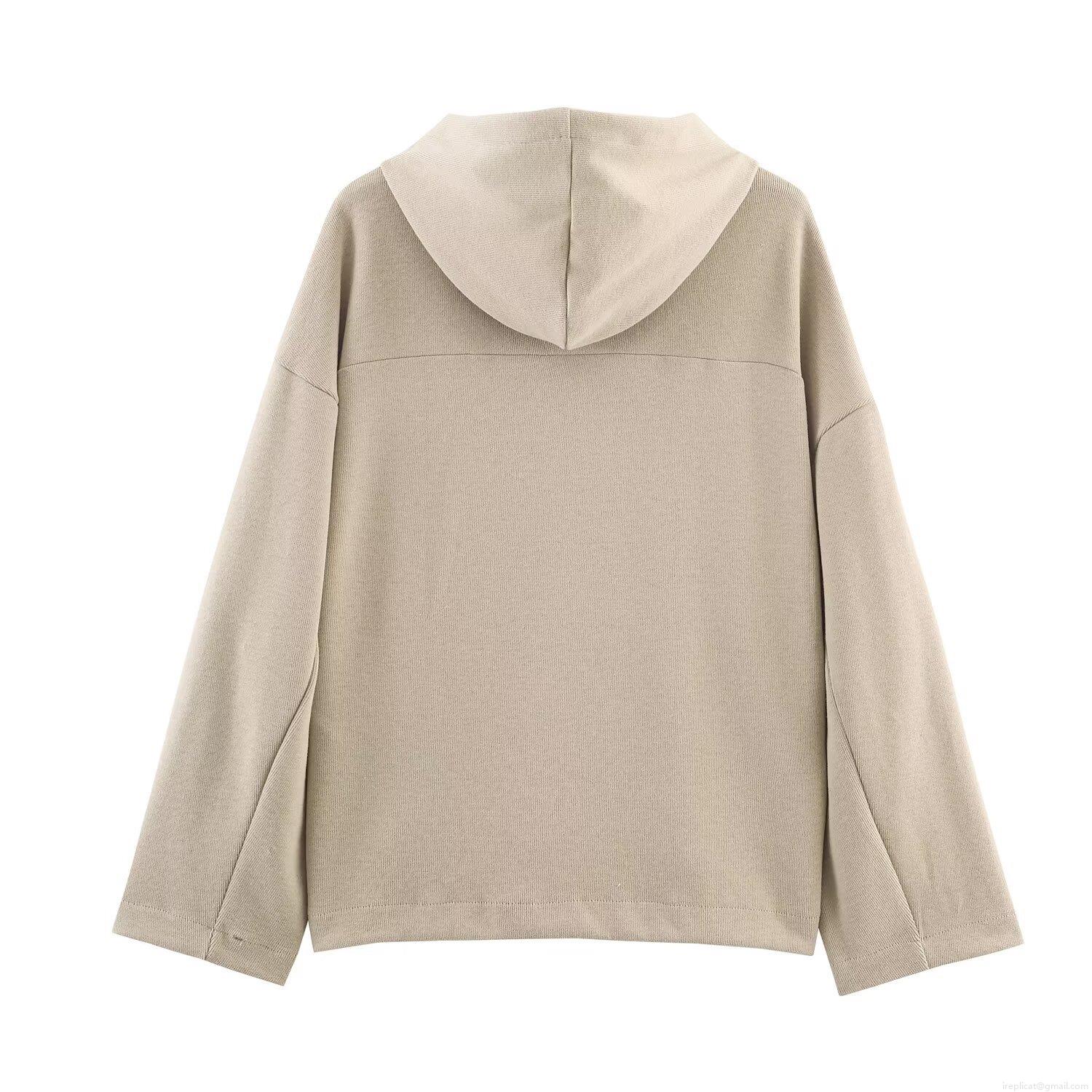 Solid Color, Hood, Drawstring Design, Drop Shoulder Cut, Center Seam Decorative Line
