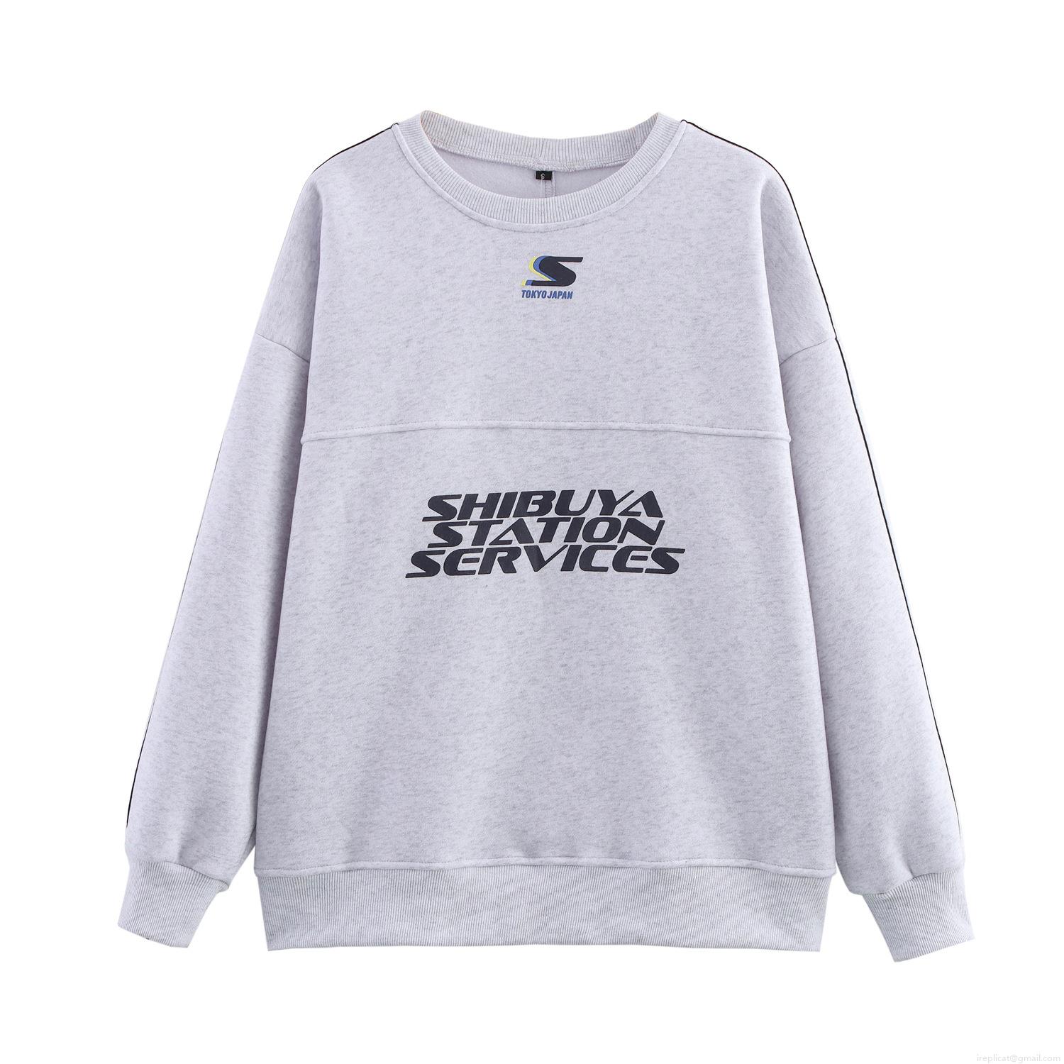 Stripe, Letters, Letter Printing, Drop Shoulder Design, Side Color-blocked Lines