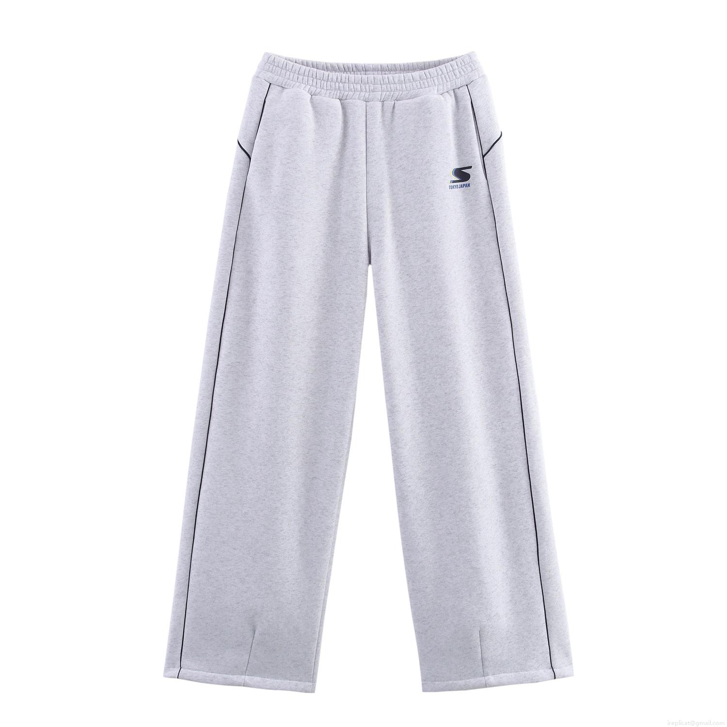 • Women's Casual Knitted Two Piece Set Letter Print Round Neck Sweatshirt and Wide Leg Pants Streetwear Loungewear Outfit Heather Grey