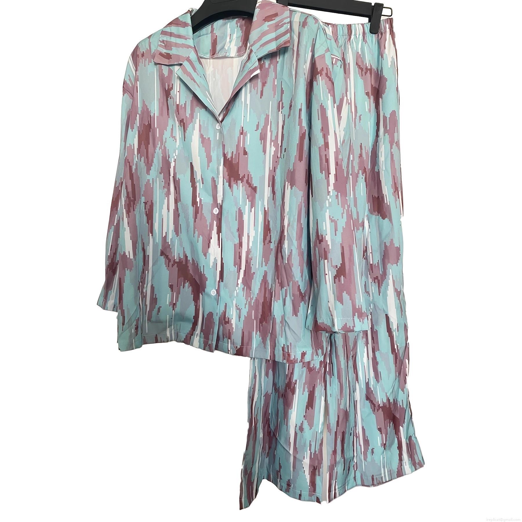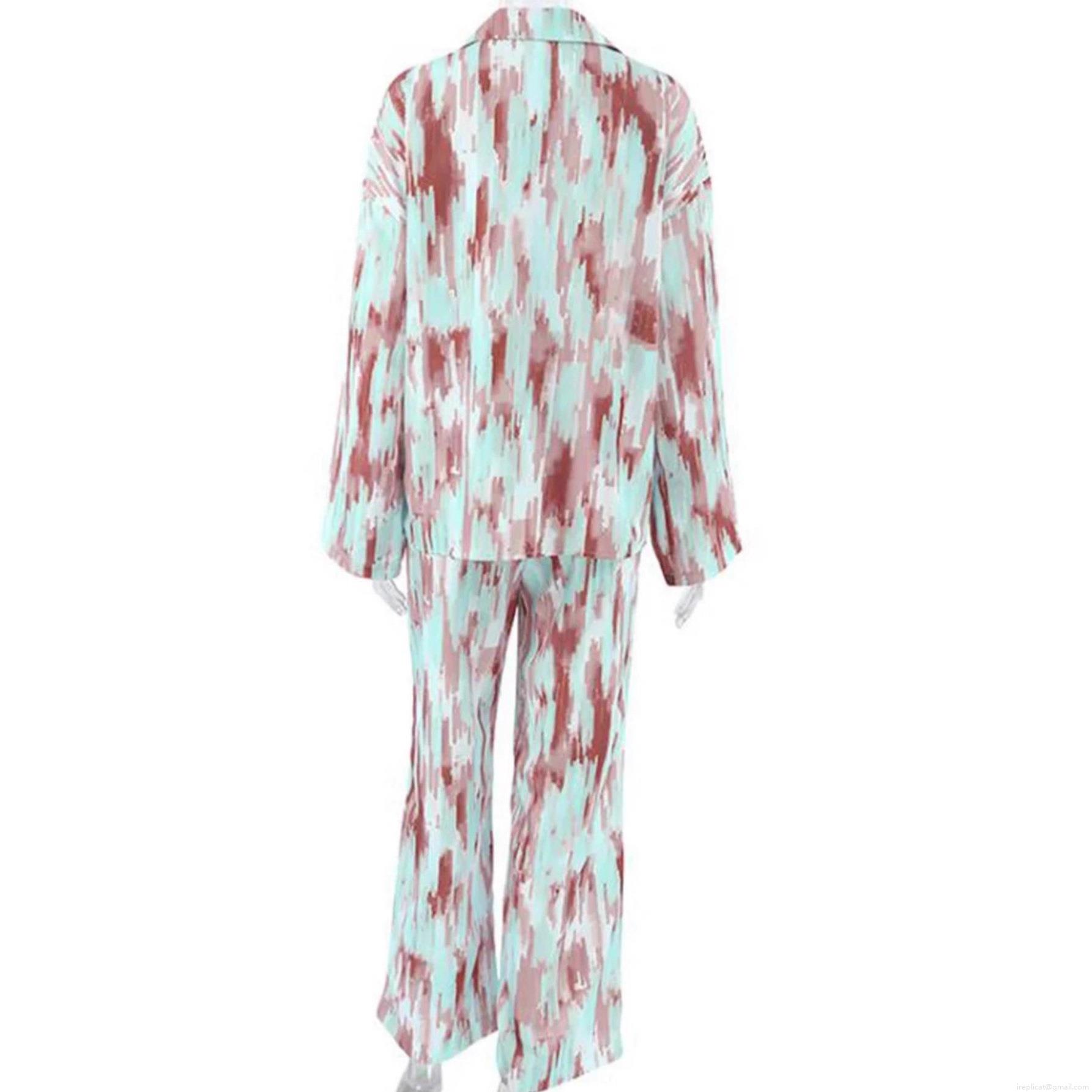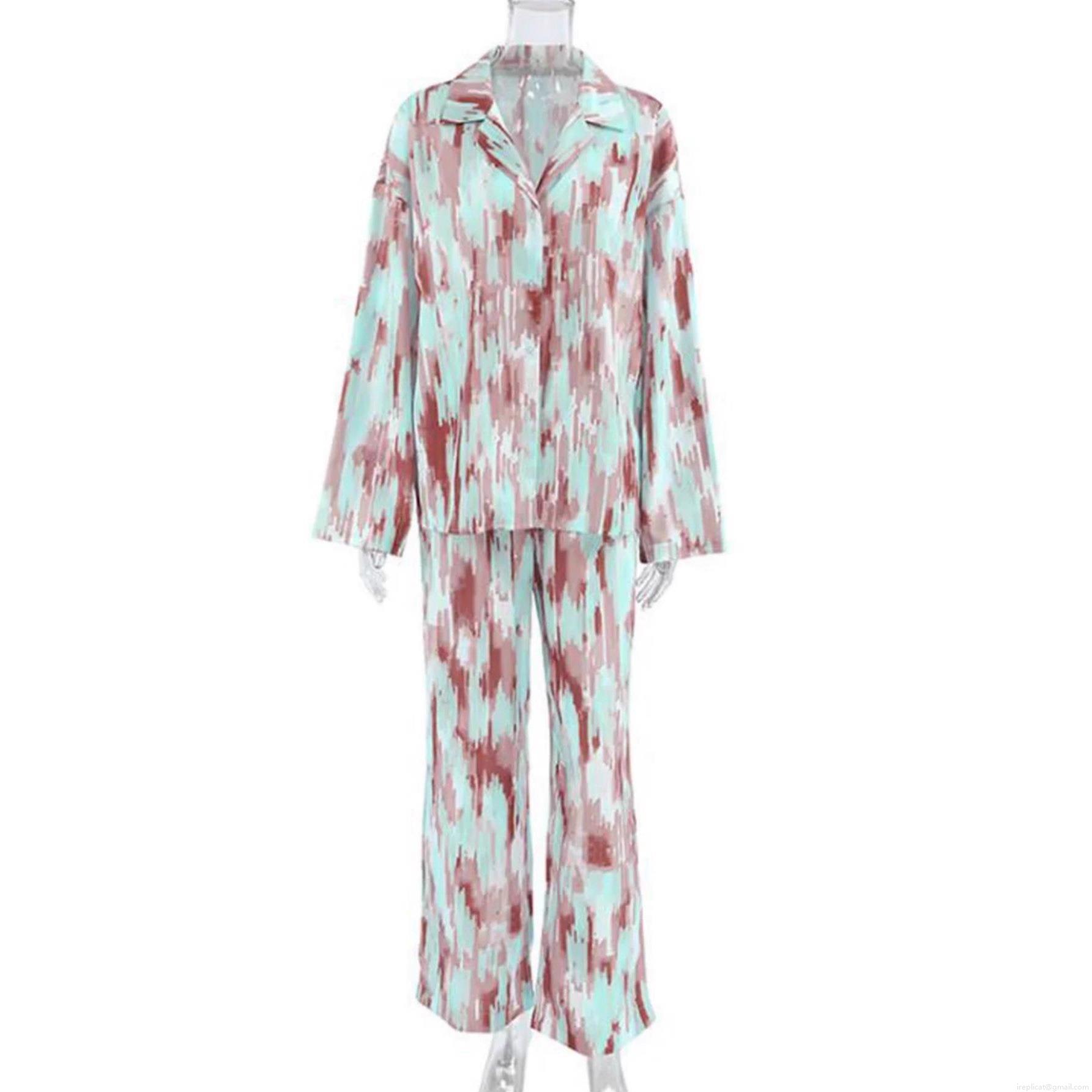 • Women's Casual Lounge Set Polyester Abstract Floral Print Long Sleeve Button Down Shirt and Wide Leg Pants Relaxed Fit 2 Piece Tracksuit Pajama Set Autumn Fashion