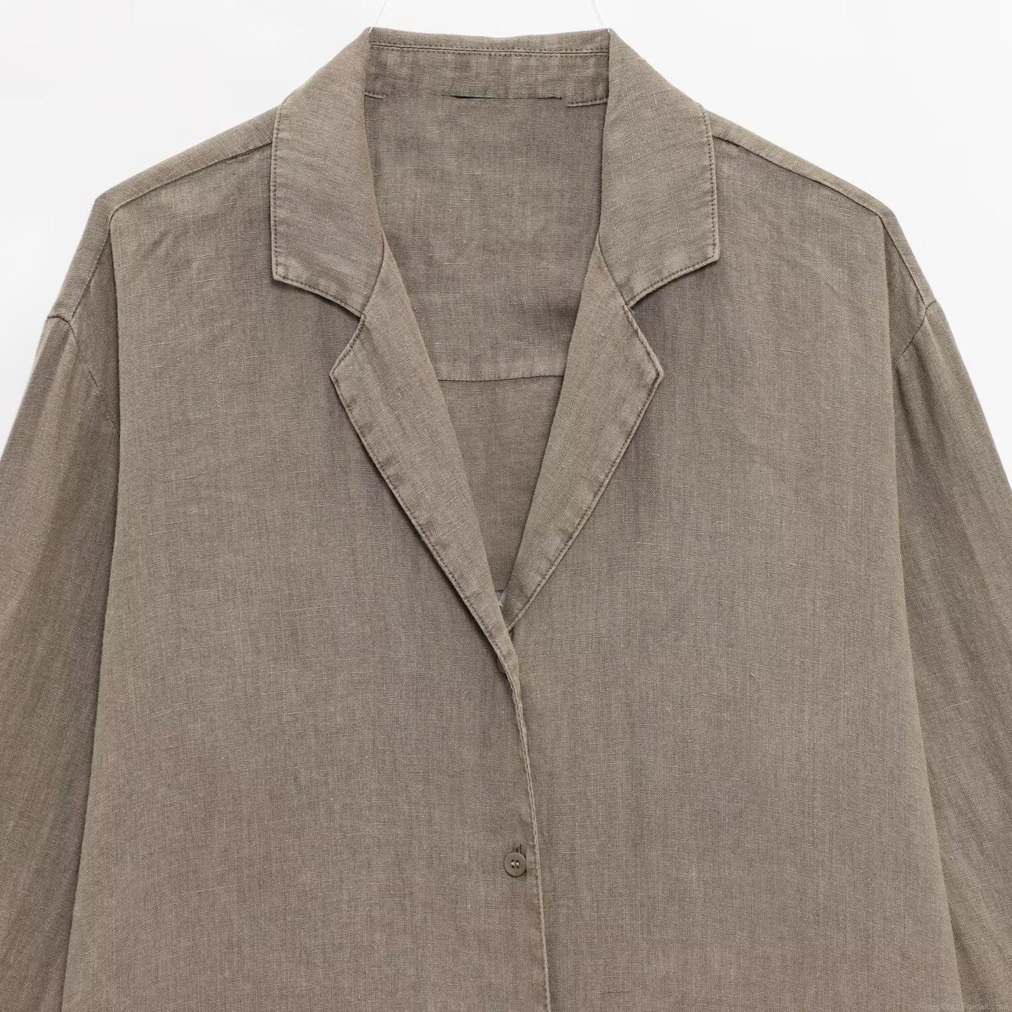 • Women's Casual Natural Linen Shirt And Shorts Two-Piece Set Summer Solid Color Loose Breathable Hemp Texture Short Sleeve Outfits Loungewear For Lady