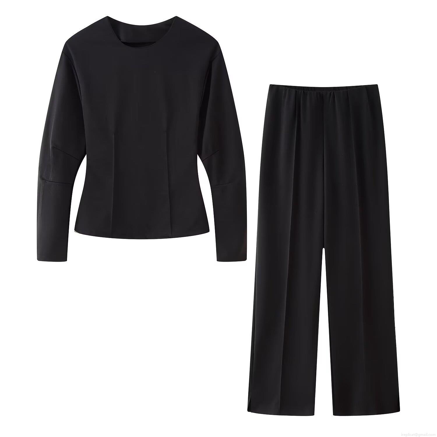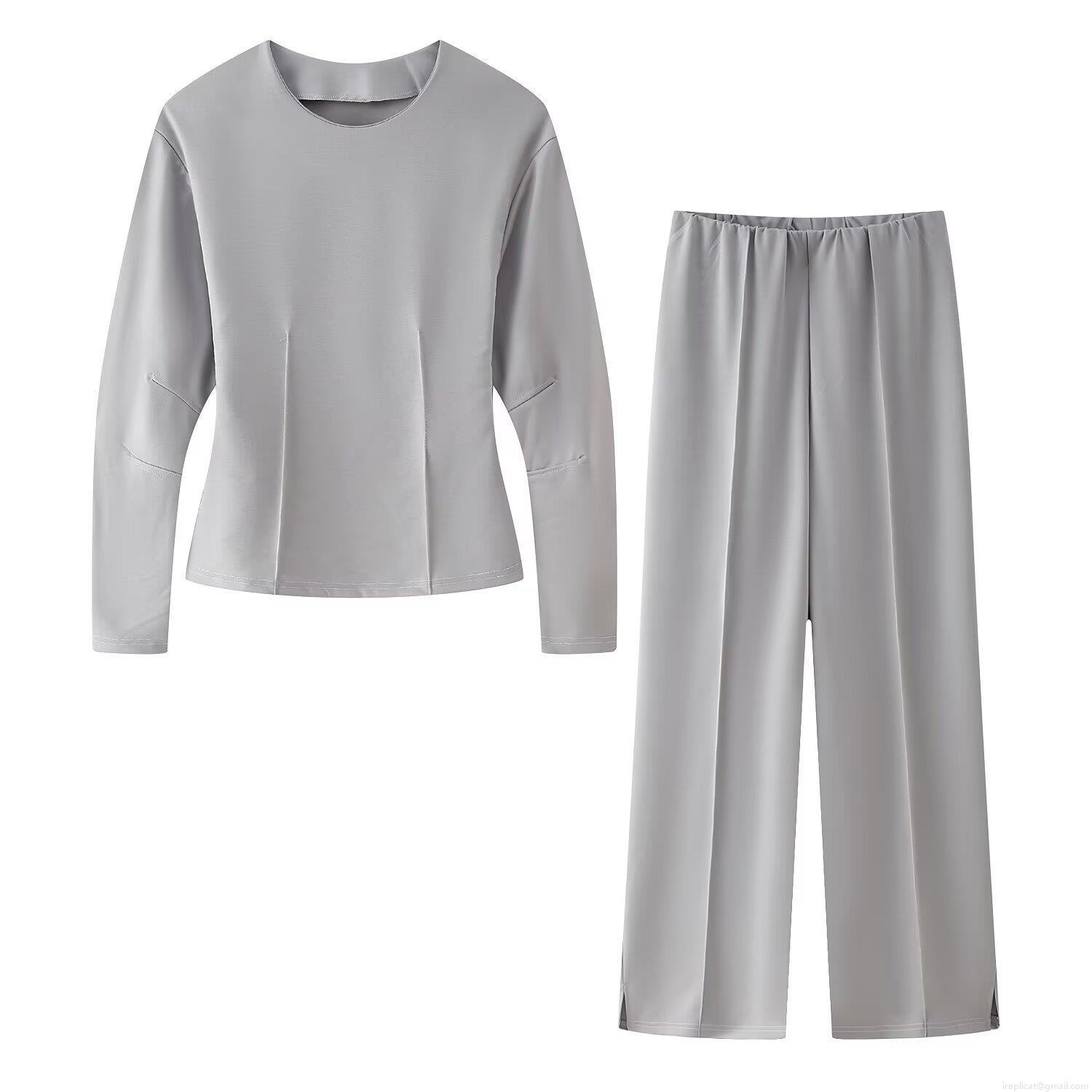 • Women's Casual Two-Piece Loungewear Set Solid Round Neck Sweatshirt And High Waist Wide Leg Pants Set Polyester Sporty Tracksuit For Women