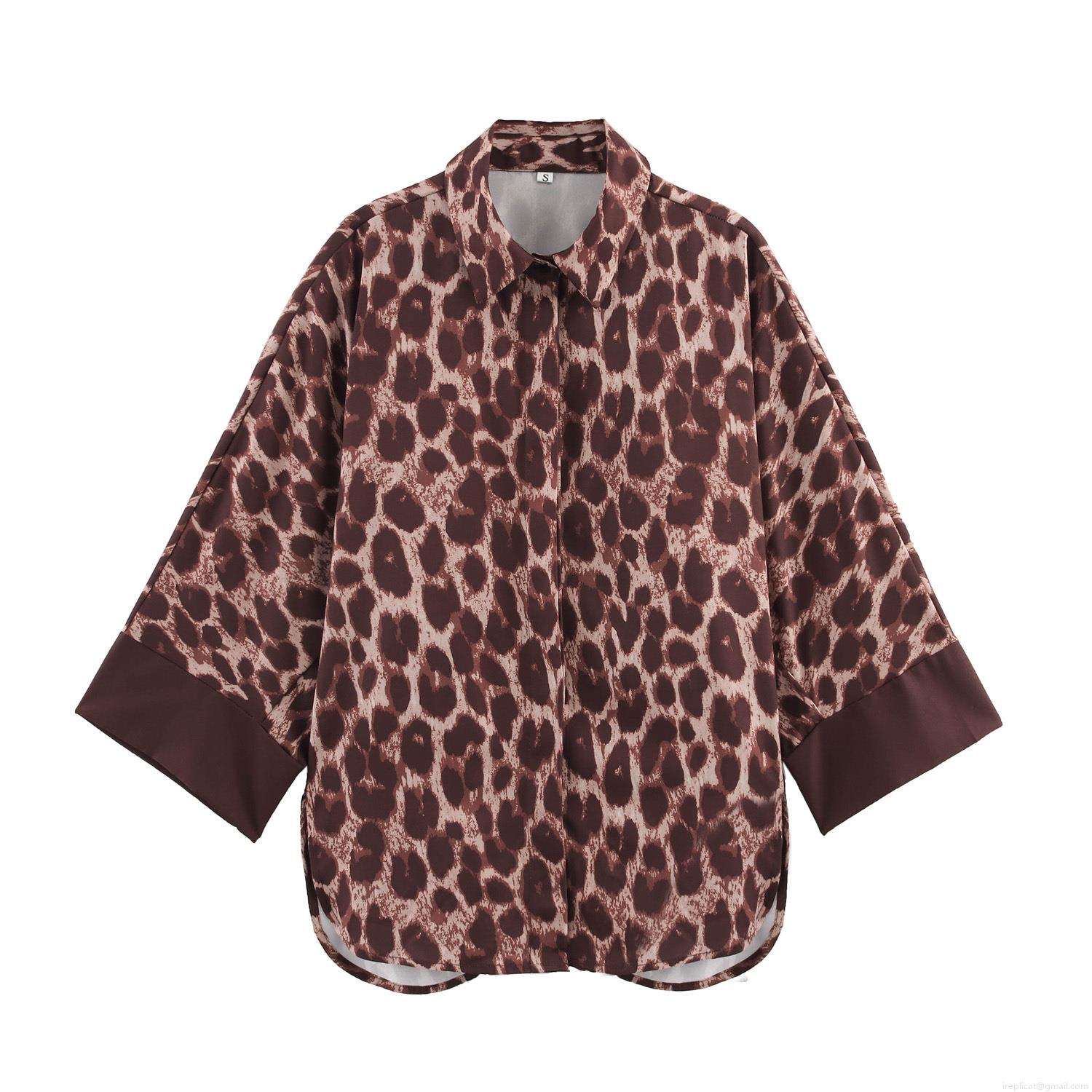 Leopard Print, Digital, Buttons, Spliced ​​cuffs