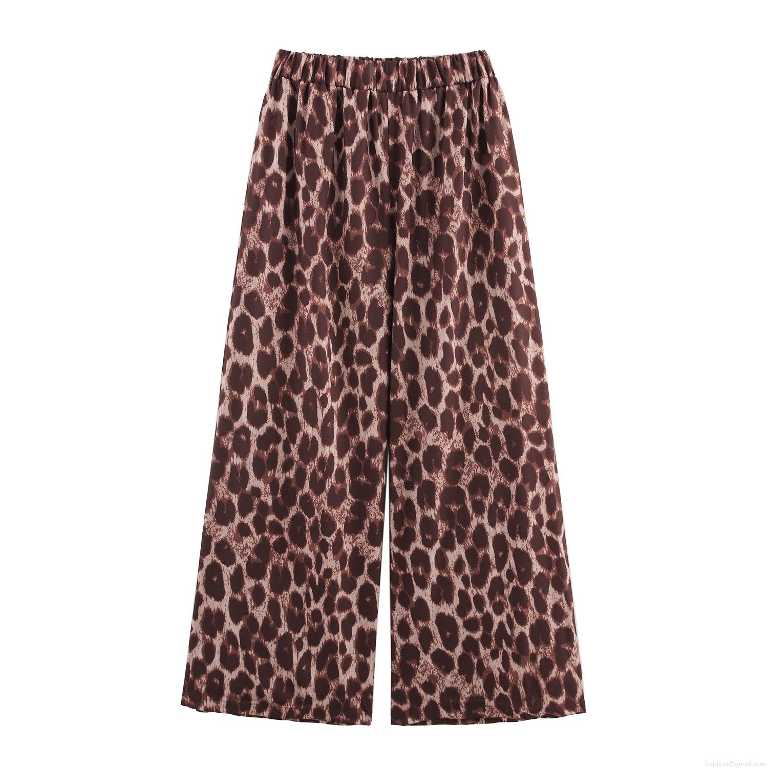 • Women's Classic Leopard Print Loungewear Set Lapel Button Down Long Sleeve Shirt and Elastic Waist Wide Leg Pants Two Piece Polyester Casual Home Suit