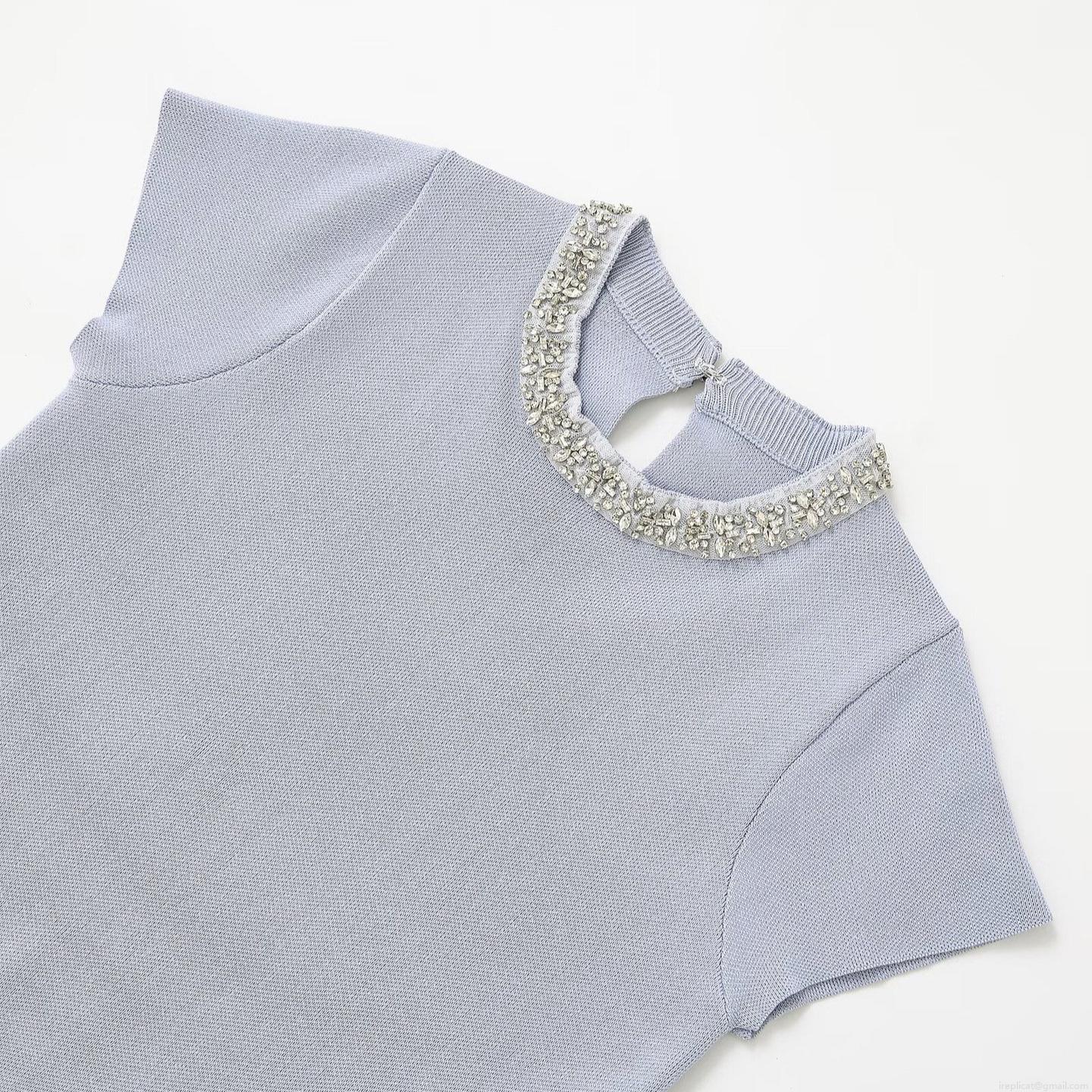 • Women's Elegant Knit Two Piece Set Jeweled Neck Short Sleeve Top And High Waist Pleated Mini Skirt Summer Casual Office Wear Sweet Chic Outfits