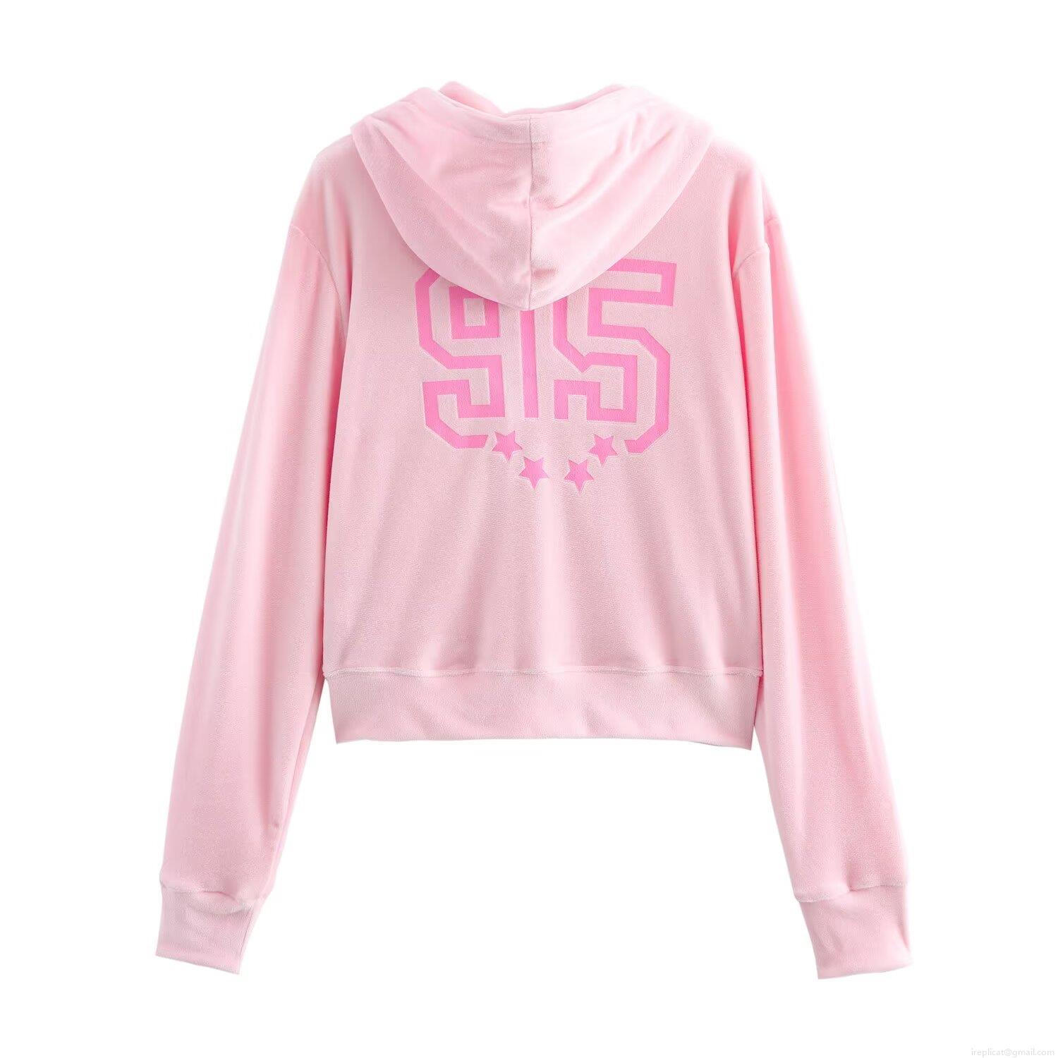 Solid Color, Splice, Number, Five-pointed star, Zipper, Velvet, Drawstring, Letter Print