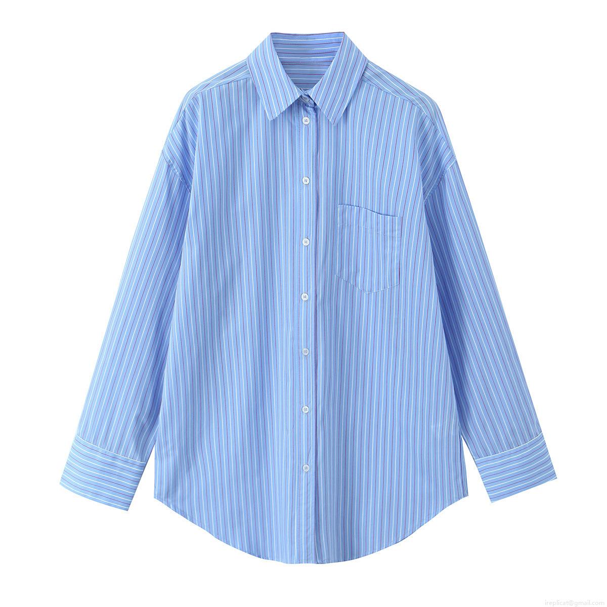• Women's Fashion Stripe Poplin Two Piece Outfits Button Down Long Sleeve Shirt and Drawstring Wide Leg Pants Loose Loungewear Set