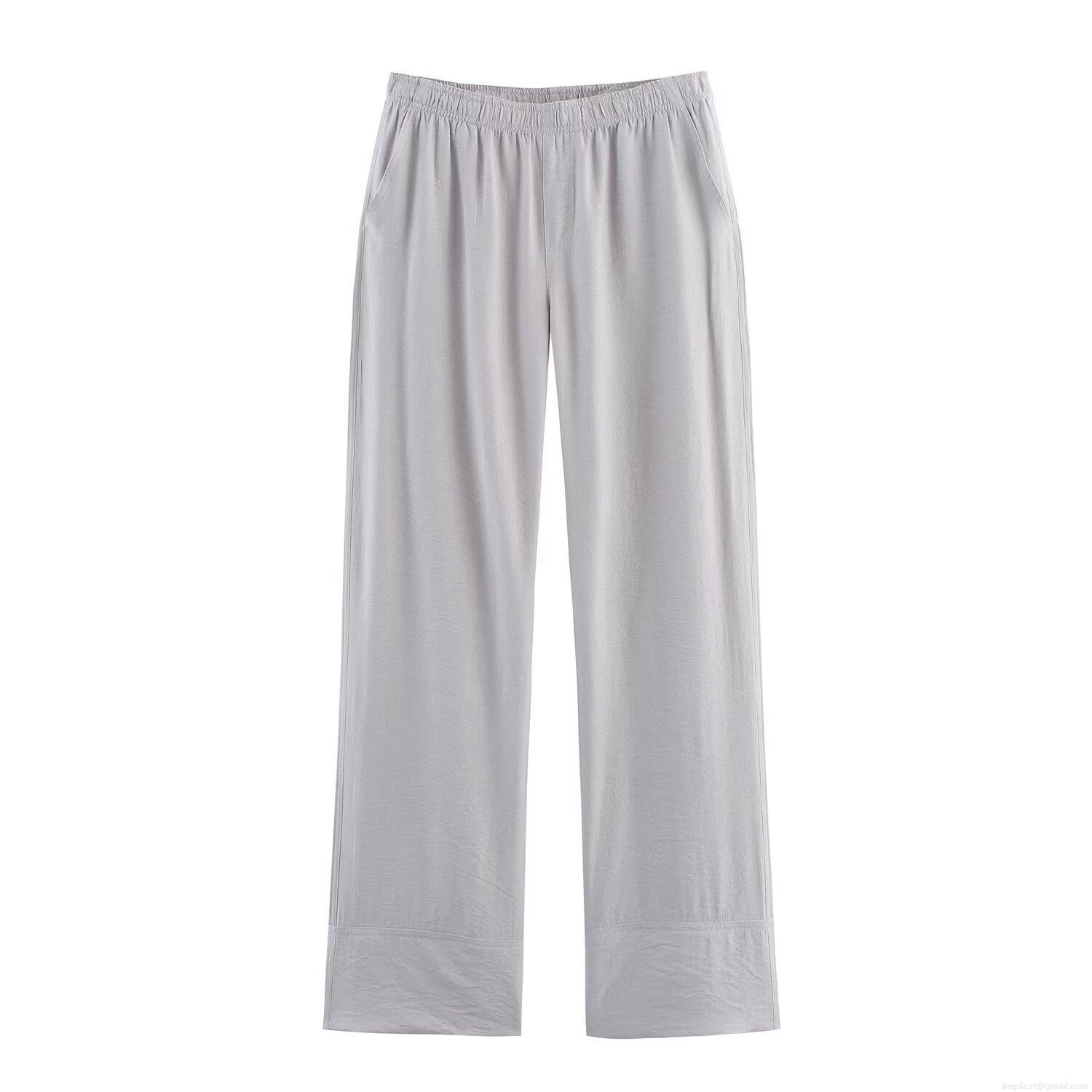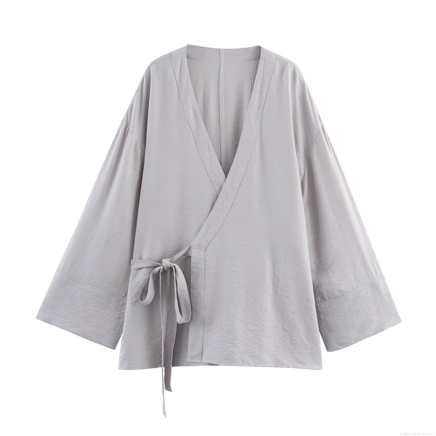 • Women's Japanese Style Wrap Jacket And Pants Set Polyester Solid Color Tie Waist Kimono Cardigan Wide Leg Trousers Two Piece Lounge Suit Streetwear Casual Light Grey