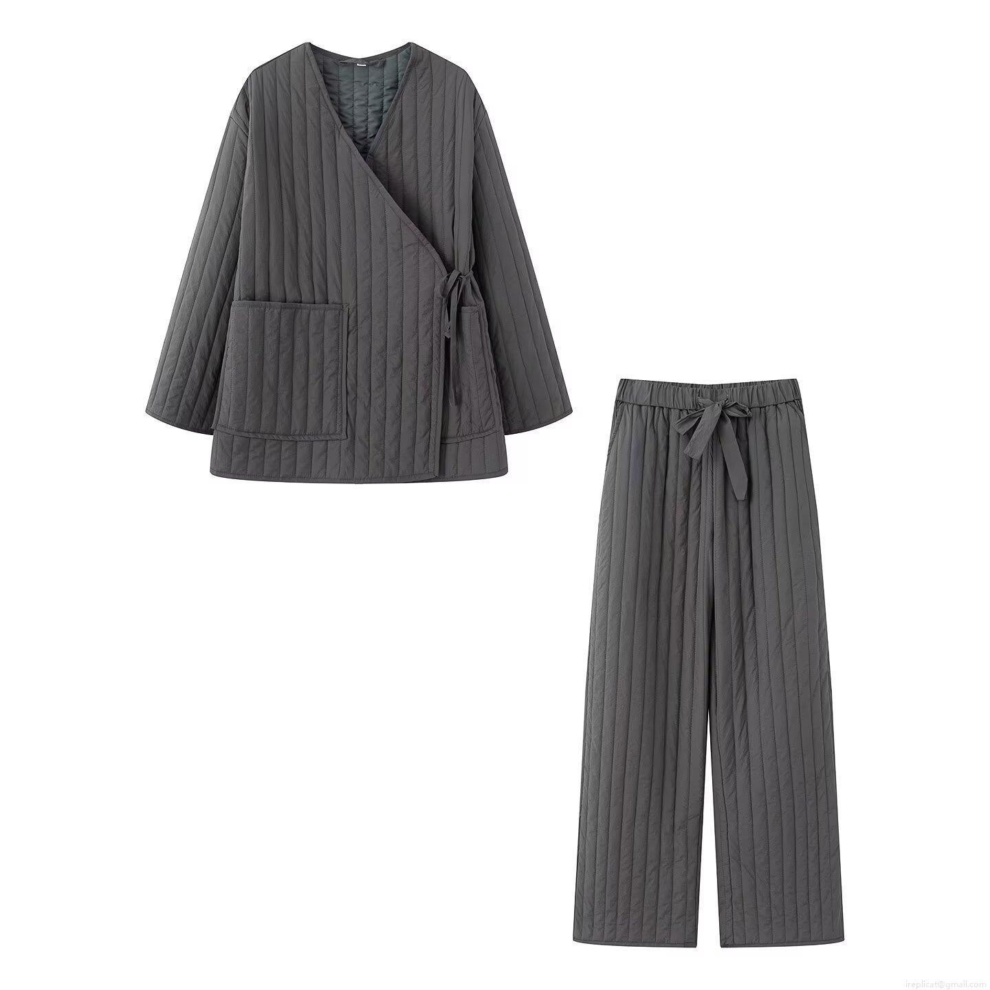 • Women's Kimono Style Quilted Loungewear Set Warm Polyester Padded Home Suit Lace-up Top and Drawstring Wide Leg Pants Soft Japanese Casual Pajamas Winter Clothing