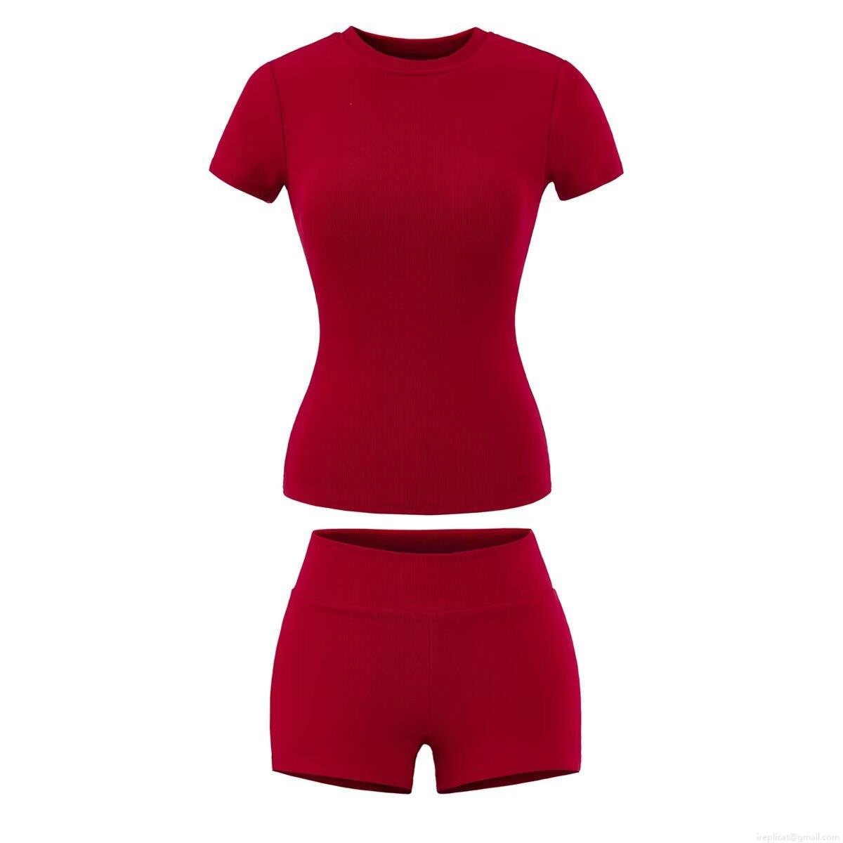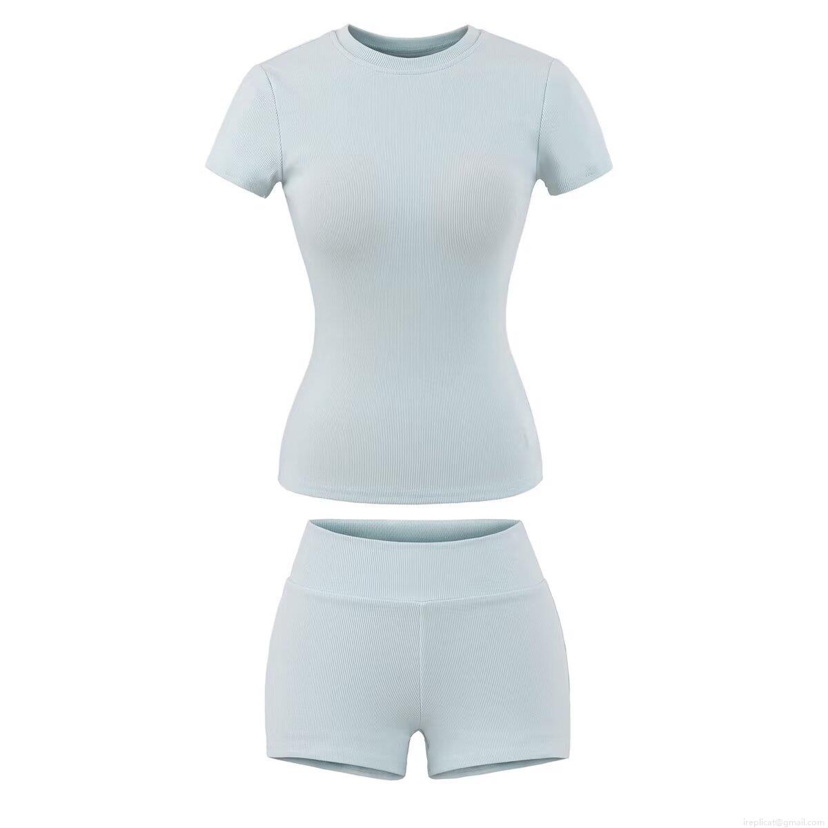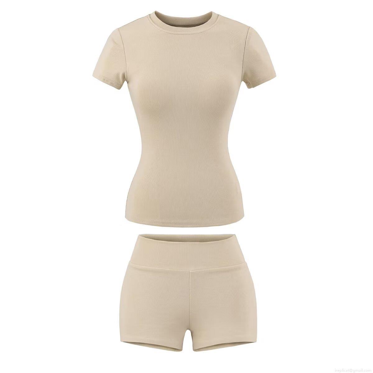 • Women's Ribbed Knit Two Piece Set Round Neck Short Sleeve Slim Fit T-Shirt and High Waist Bodycon Shorts Casual Summer Loungewear Sportswear Outfits