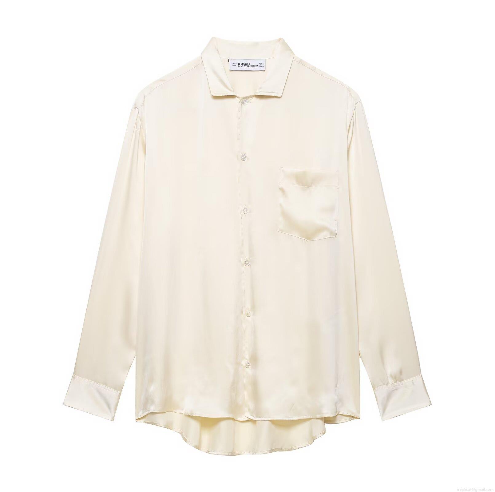 • Women's Satin Silk Long Sleeve Shirt And Wide Leg Pants Set Elegant Solid Color Button Down Pocket Blouse Drawstring Trousers Casual Loungewear Two Piece Outfits For Women Streetwear