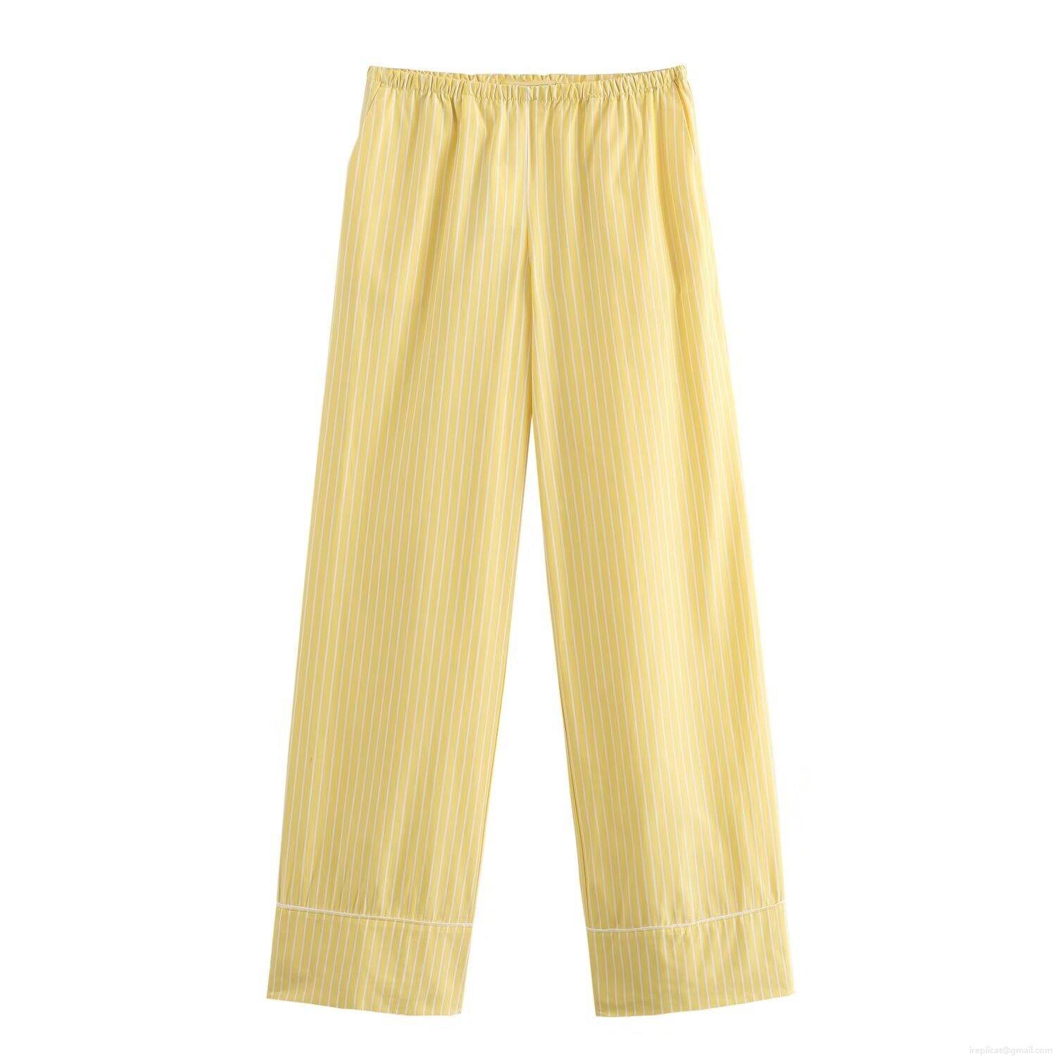 • Women's Summer 2 Piece Striped Lounge Set Casual Loose Long Sleeve Button Down Shirt And High Waist Straight Leg Pants Polyester Tracksuit Two Piece Outfits For Streetwear Vacation Home Wear