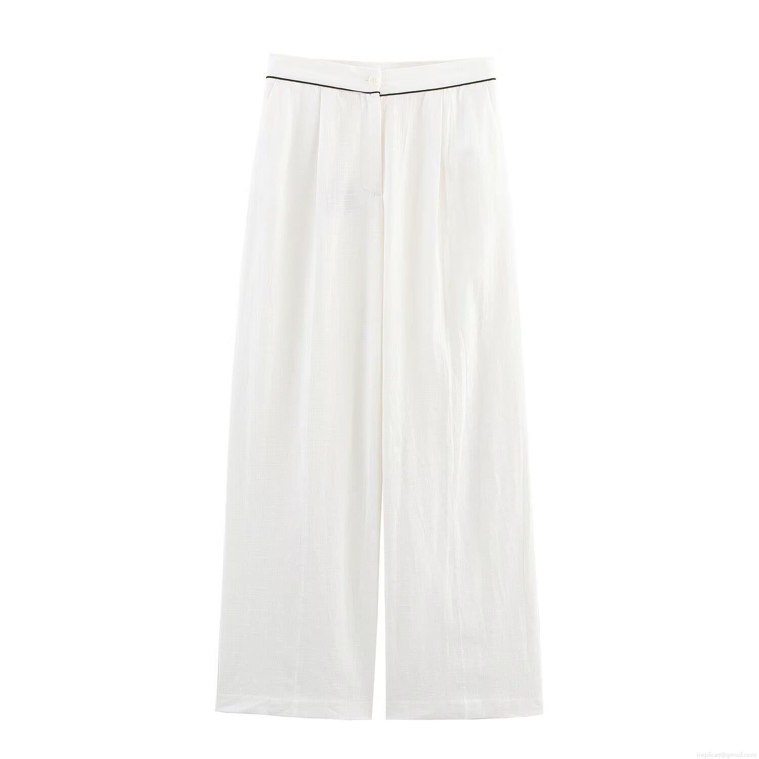 Solid Color, Color Blocking, Piping, Wide-leg