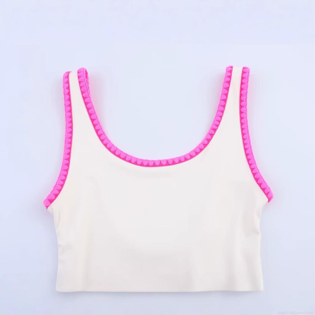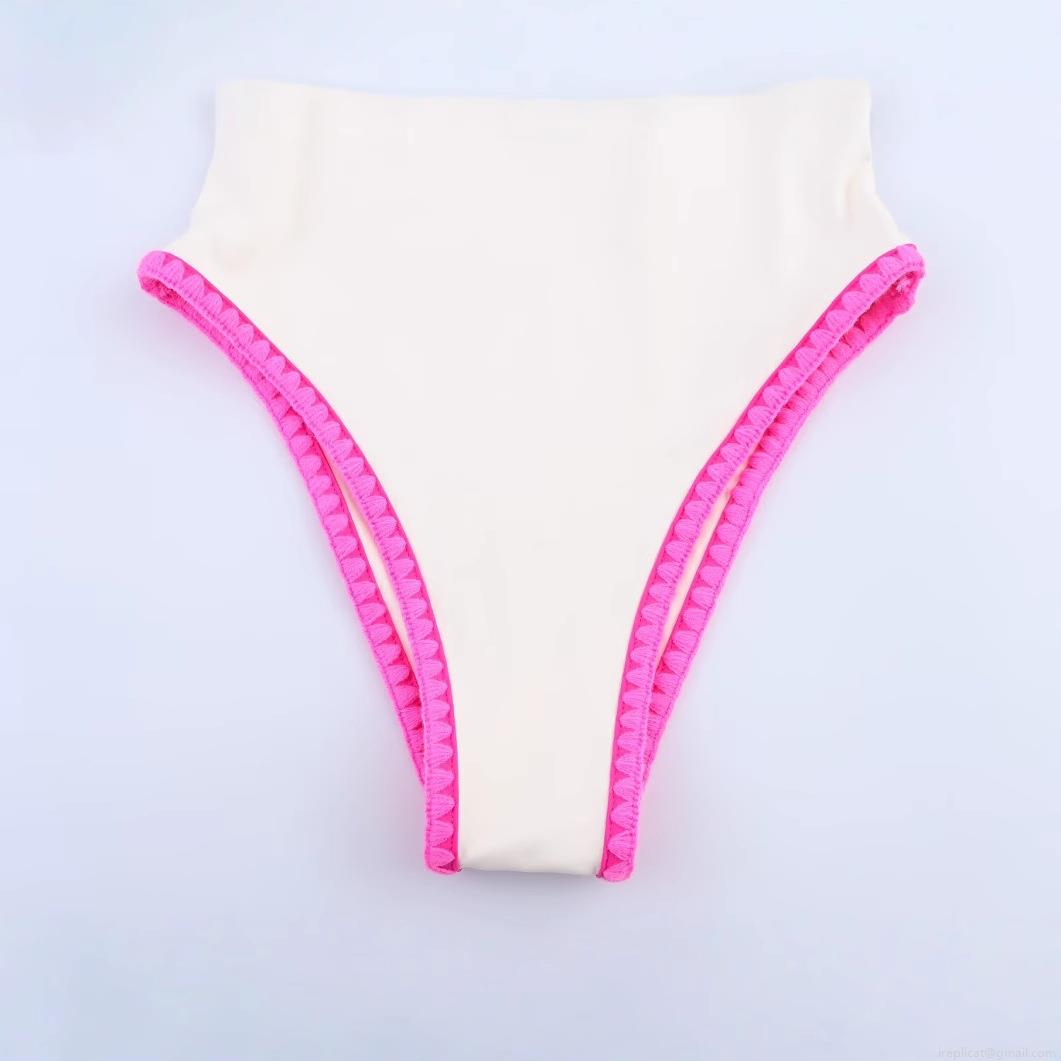 Women's One Piece Swimsuit White Pink Contrast Scalloped Trim High Stretch Beach Swimwear Summer Vacation Bathing Suit For Women