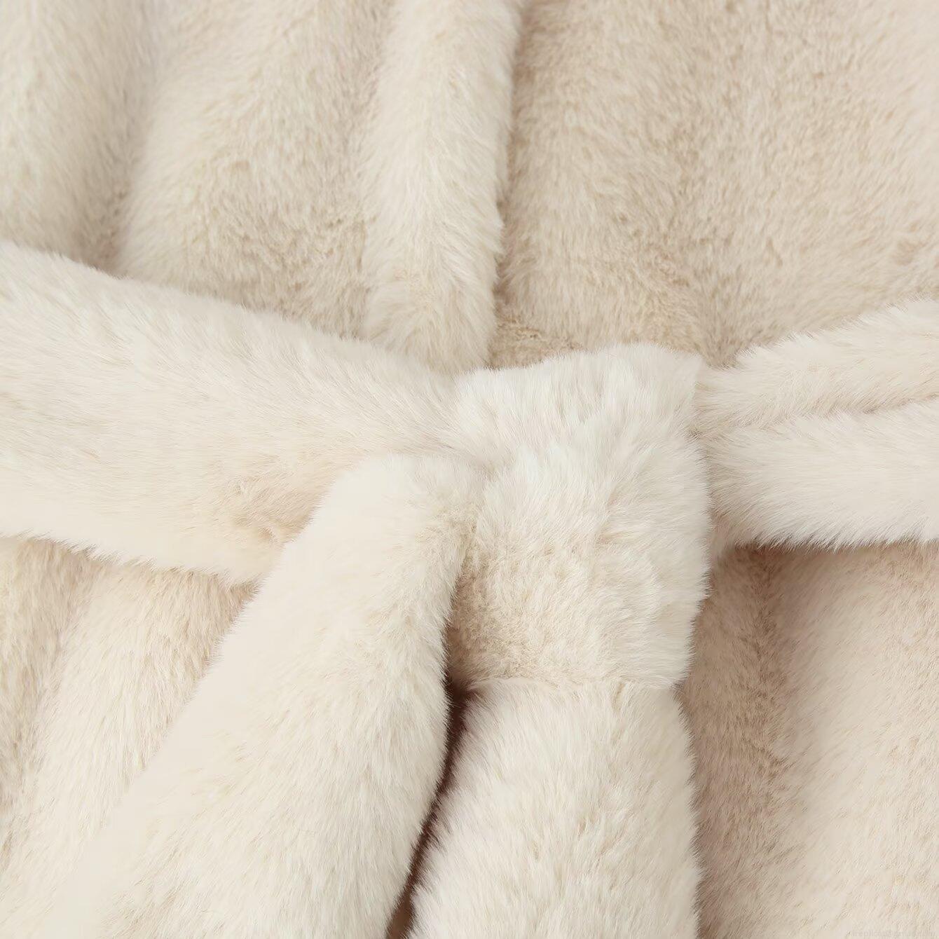 • Elegant Faux Fur Coat With Belt Women Autumn Winter Long Sleeve Plush Jacket Lapel Neck Solid Color Warm Outerwear Streetwear