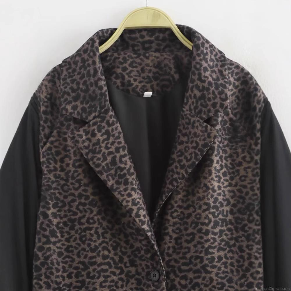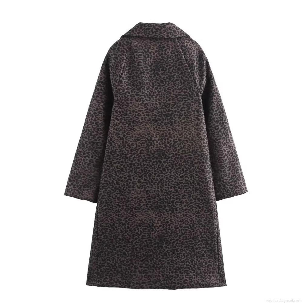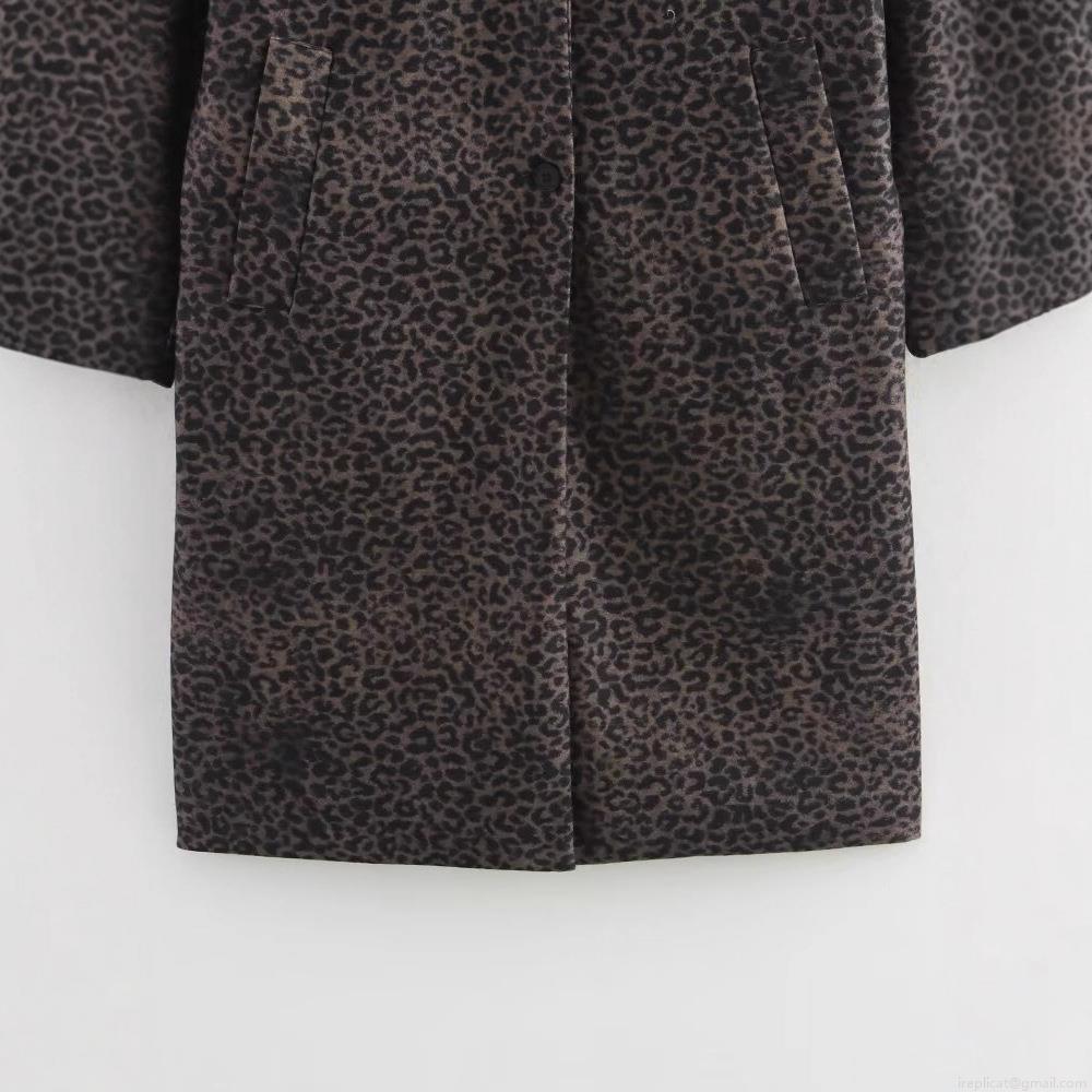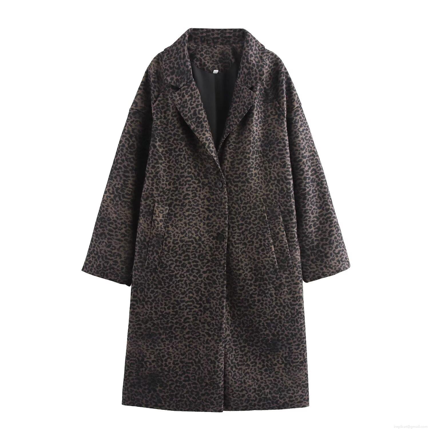 • French Fashion Women Leopard Print Coat Polyester Blend Mid-length Lapel Single Breasted Autumn Winter Outerwear Jacket