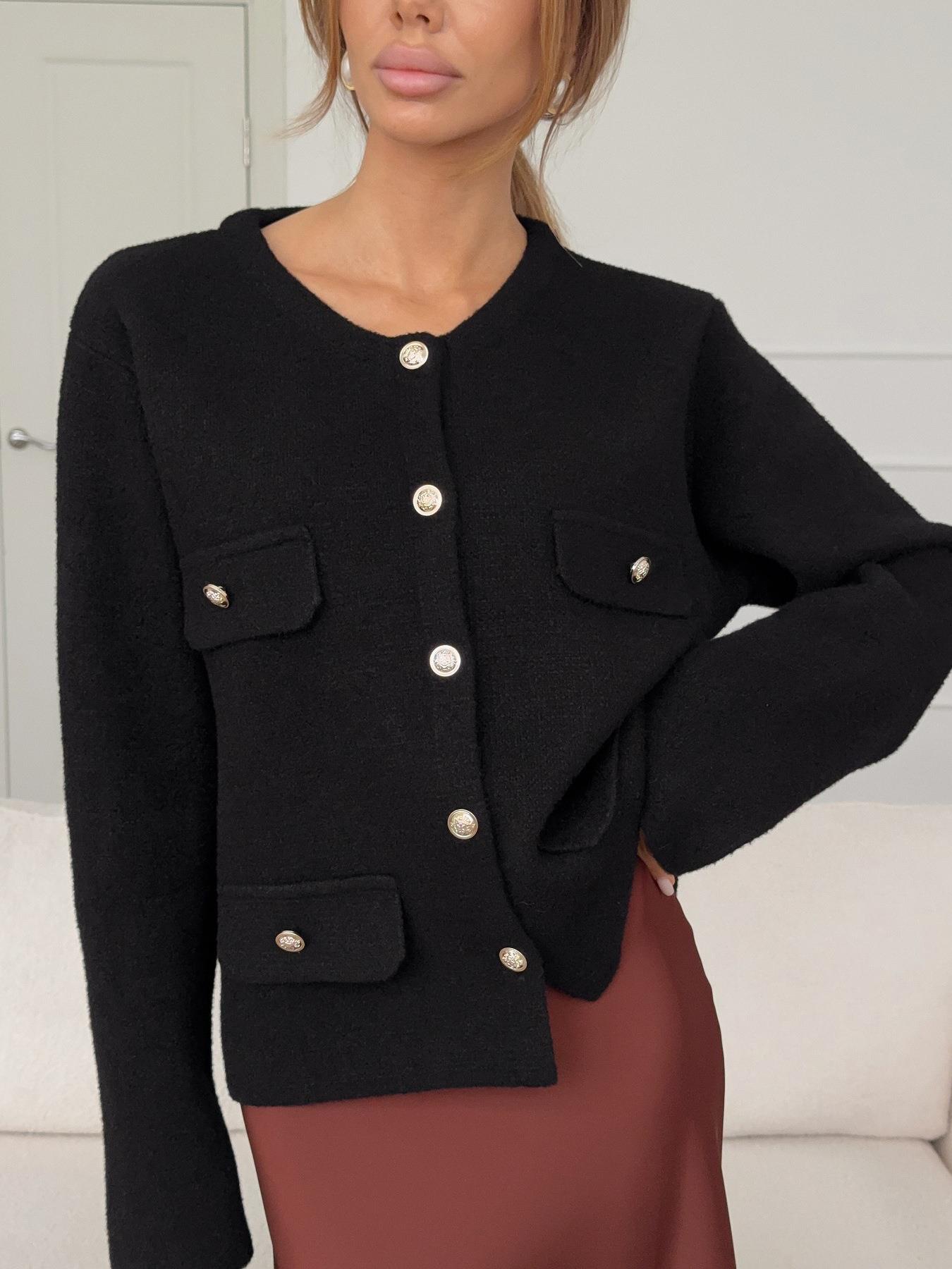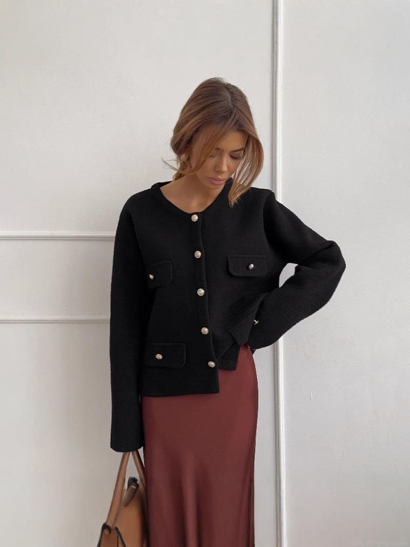 French Style Black Little Fragrance Cardigan Jacket For Women Cotton Linen Blend Long Sleeve Gold Button Tweed Texture Knitwear Office Commute Lady Top