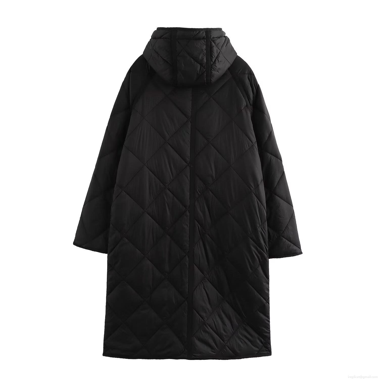• Women Diamond Quilted Extra Long Hooded Cotton Padded Jacket Warm Winter Streetwear Parka Coat Zipper Snap Button Outerwear