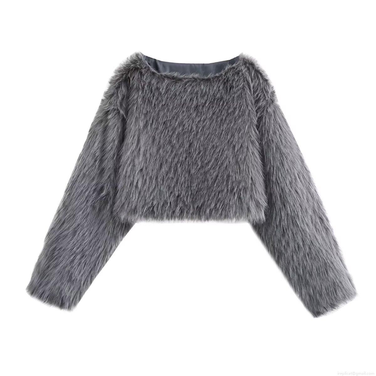 • Women Fashion Faux Fur Plush Short Pullover Jacket Casual Solid Color Long Sleeve Round Neck Warm Fuzzy Crop Top Outerwear Solid Soft Outwear