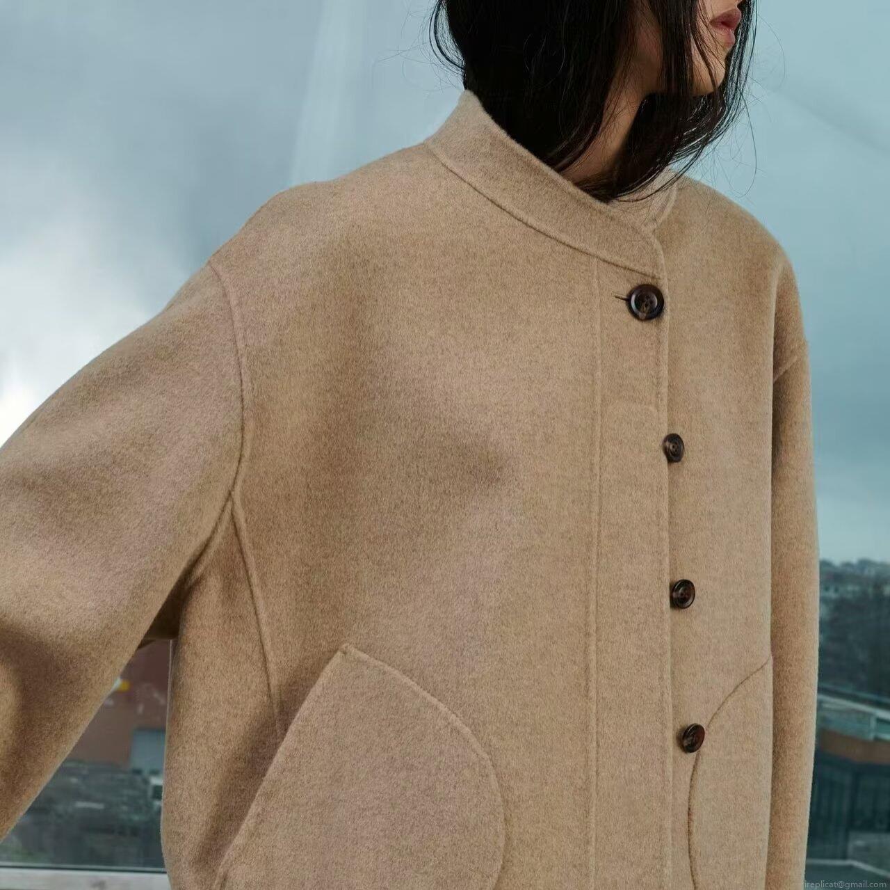 • Women Retro Minimalist Short Woolen Coat Polyester Blend Stand Collar Loose Outerwear With Pockets Casual Commuter Jacket For Winter