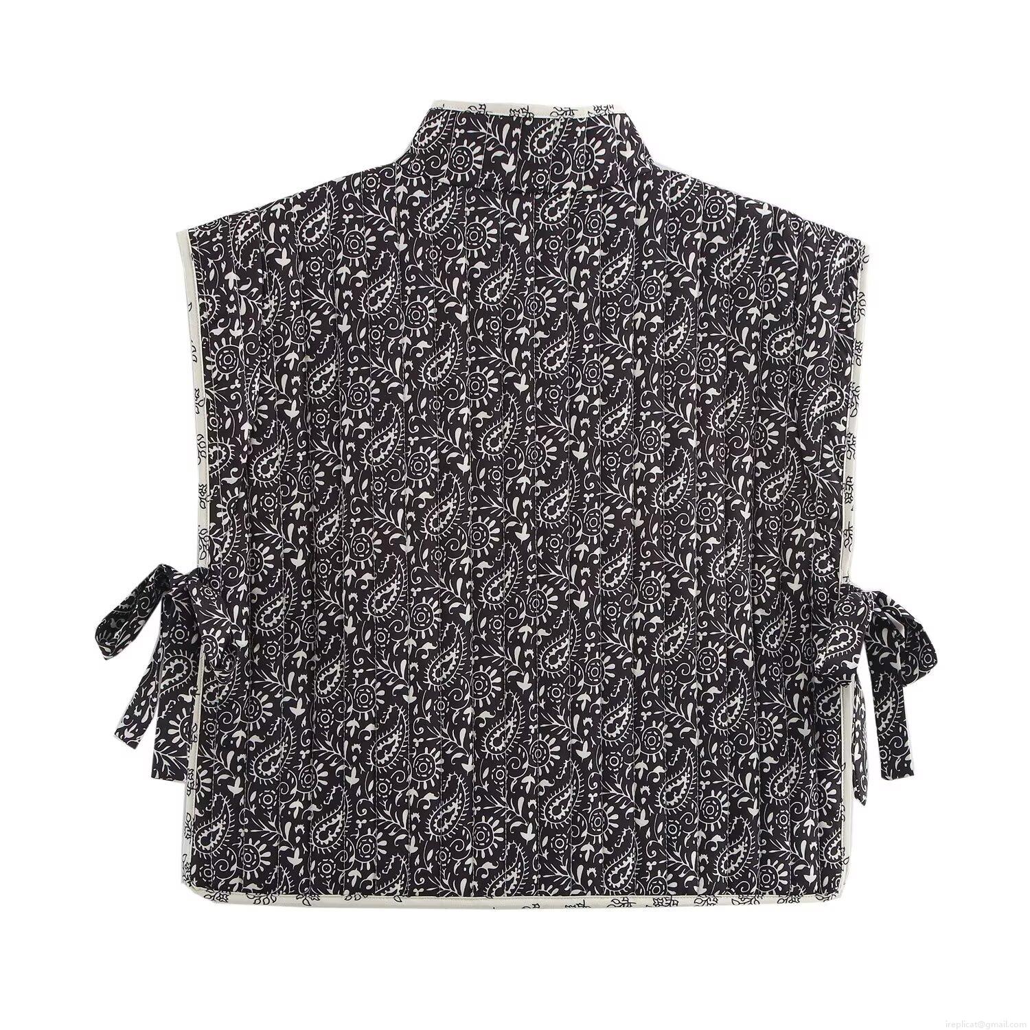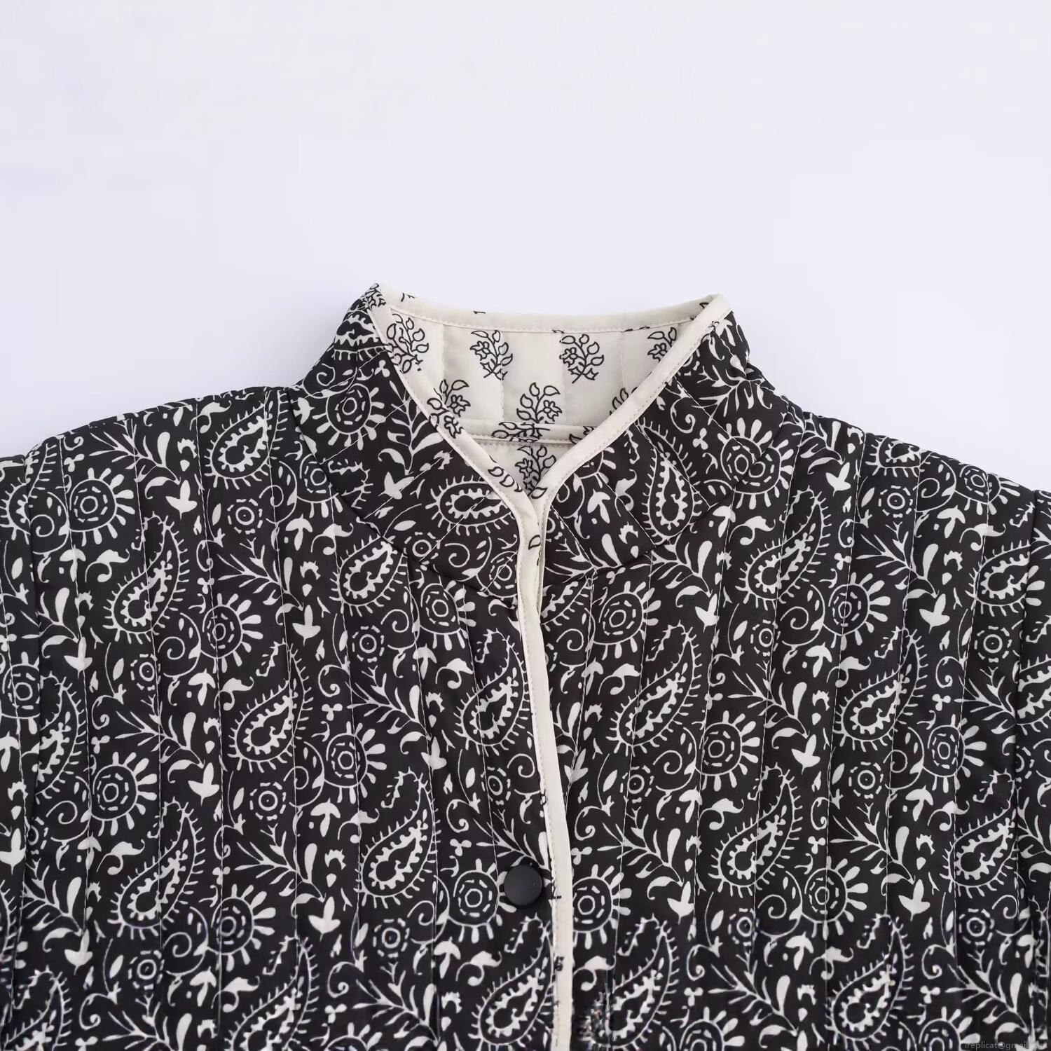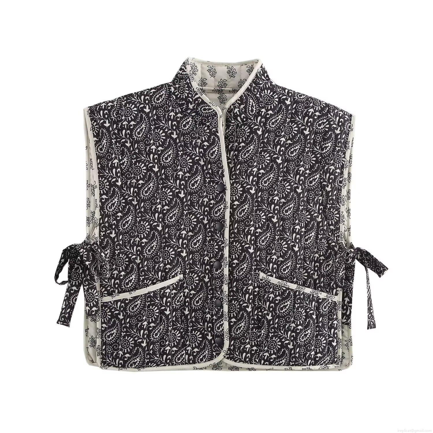 Women Reversible Padded Vest Paisley Print Quilted Stand Collar Side Tie Bow Sleeveless Jacket Autumn Winter Streetwear Warm Outwear