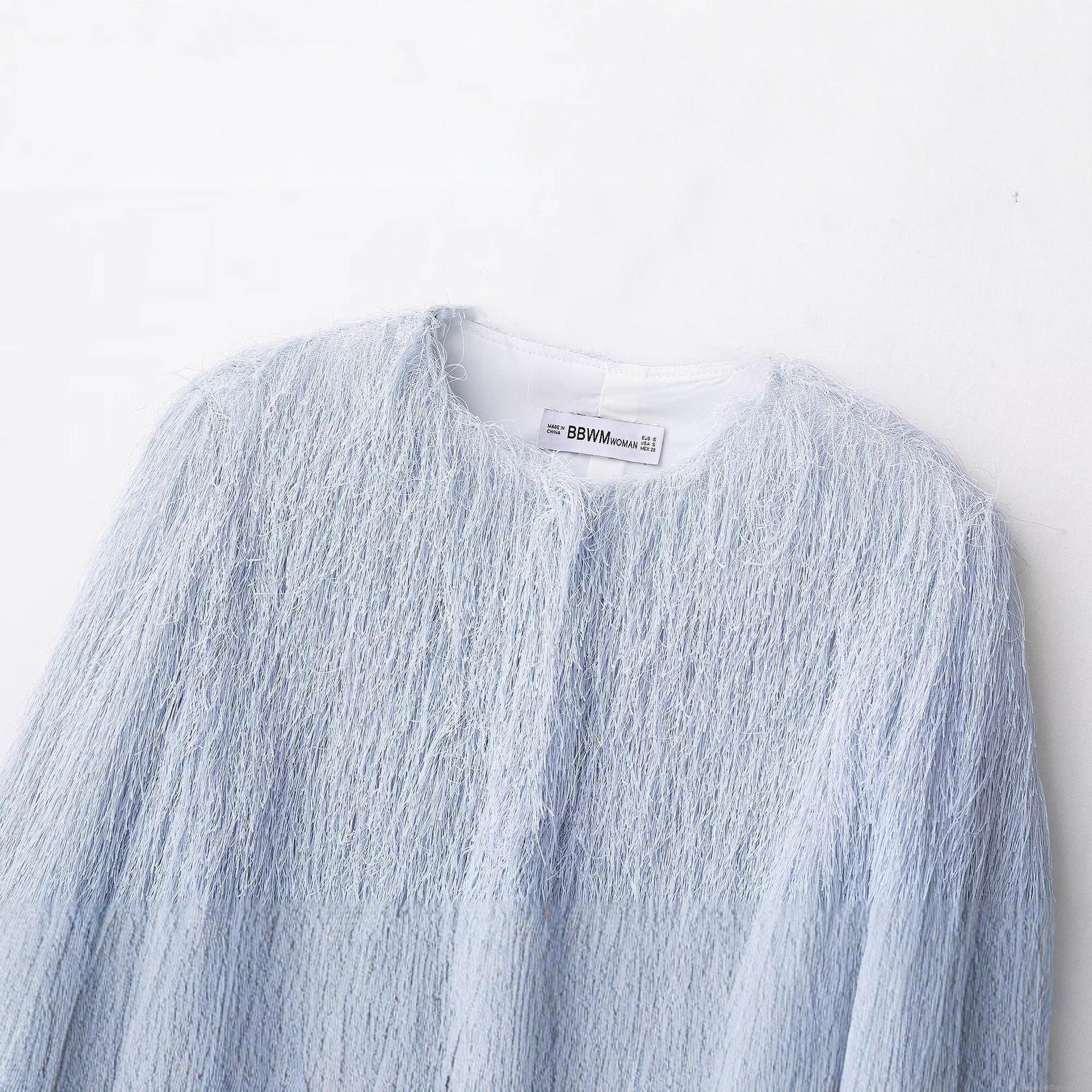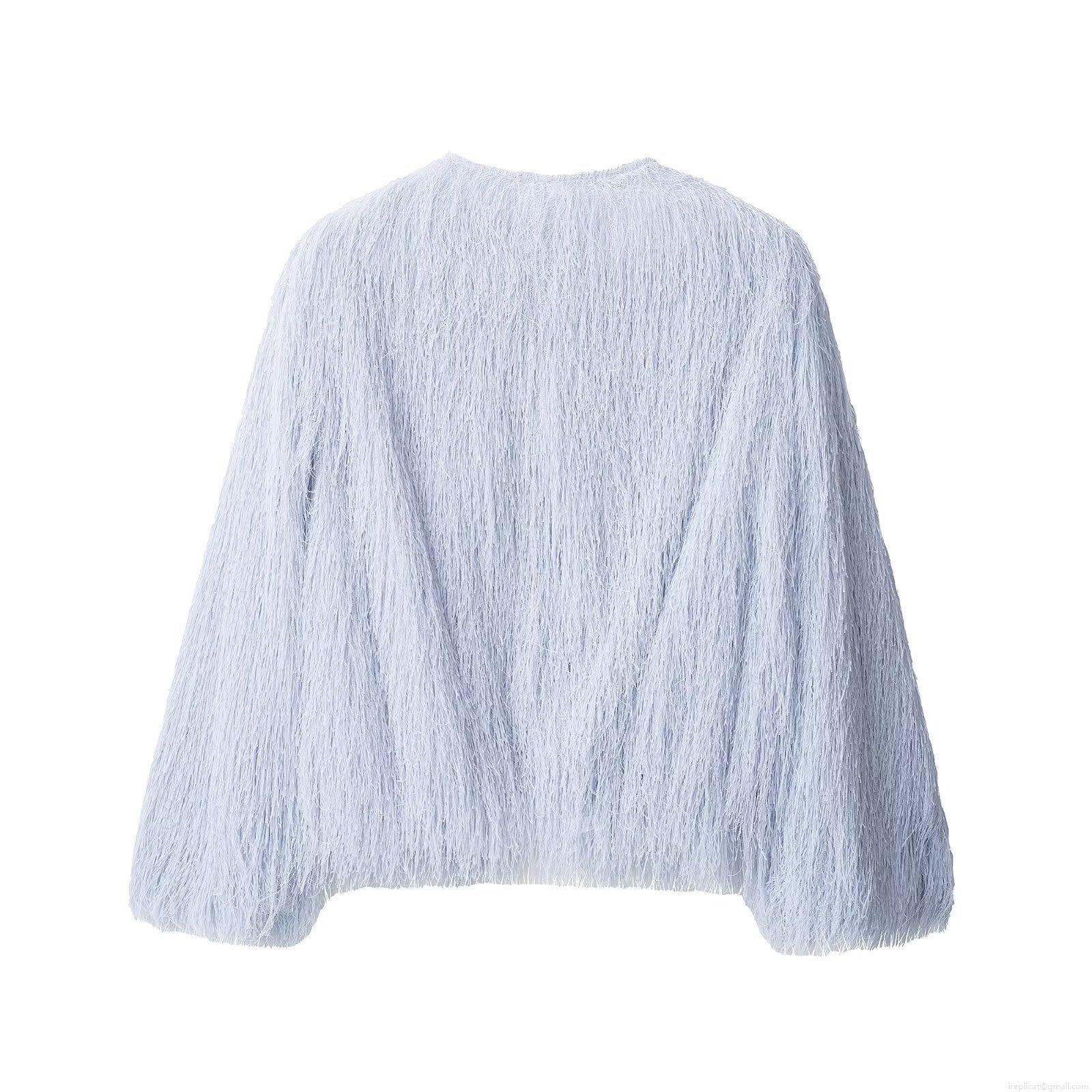 • Women Round Neck Long Sleeve Tassel Fringe Baseball Jacket Polyester Plush Plain Solid Color Short Coat Casual Streetwear For Autumn Women
