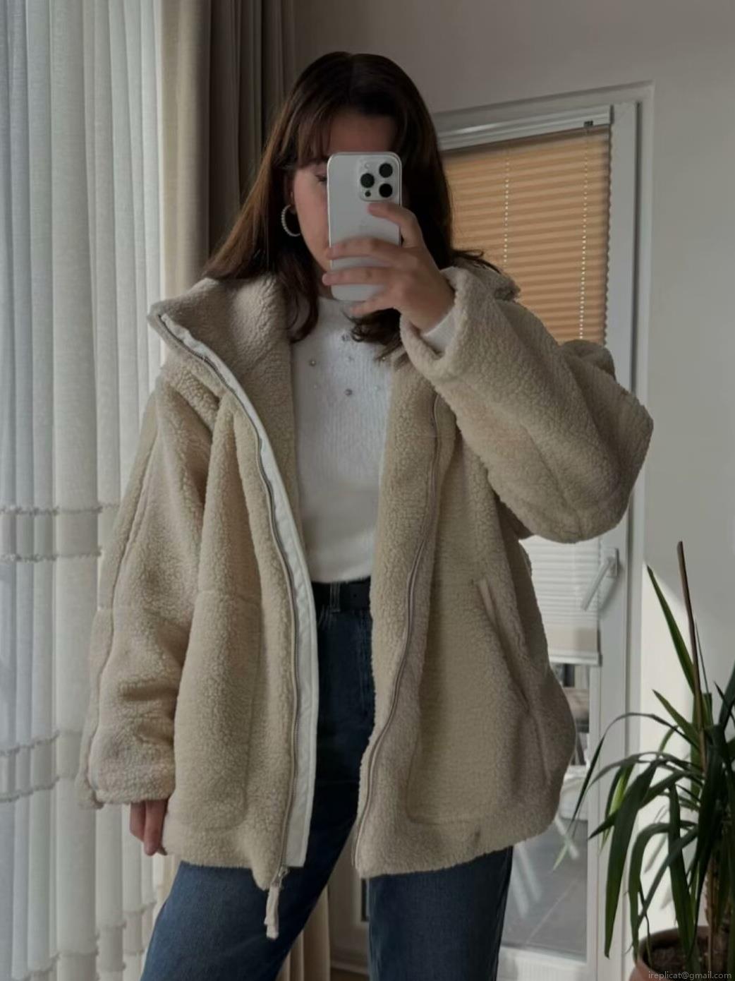 • Women Sherpa Fleece Jacket High Neck Oversized Zipper Warm Outerwear Casual Winter Faux Fur Coat With Pockets Solid Color Drop Shoulder Streetwear Ladies Fashion Top