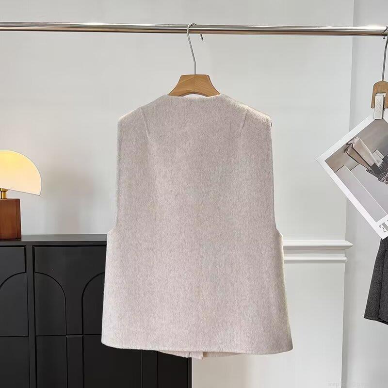 • Women's Autumn Fashion Minimalist Sleeveless Woolen Blend Vest Round Neck Button Patchwork Solid Color Casual Cardigan Outerwear Waistcoat