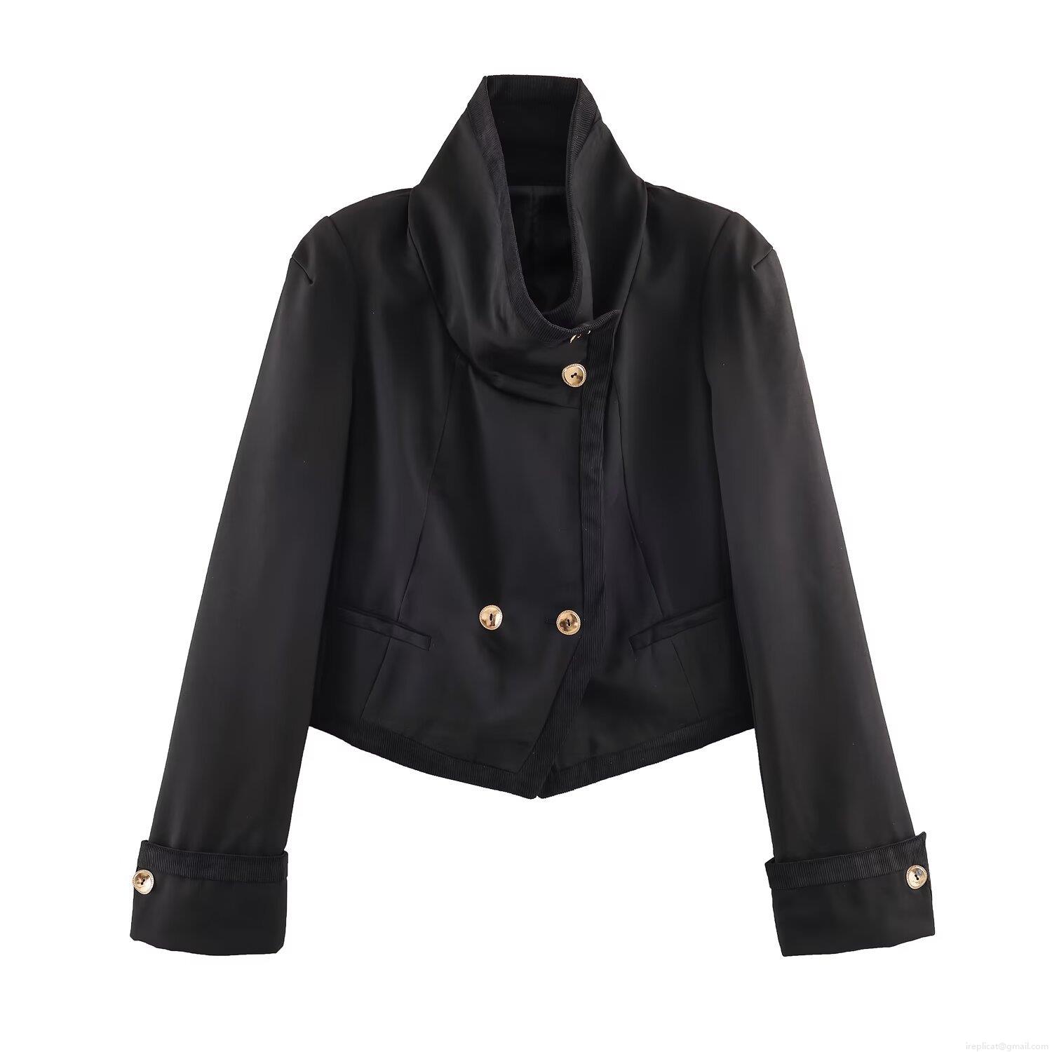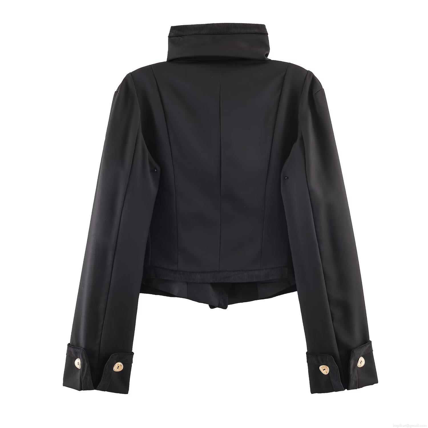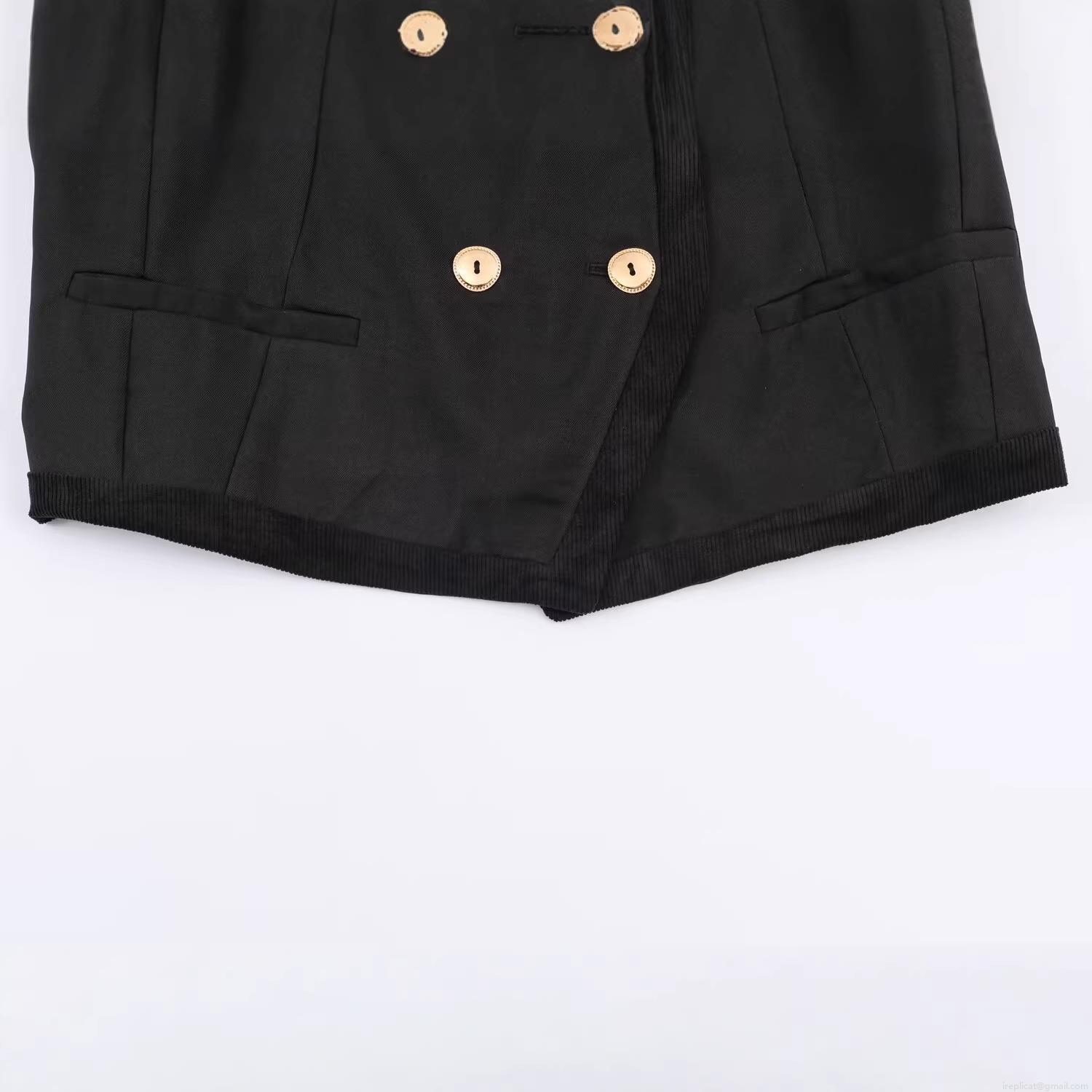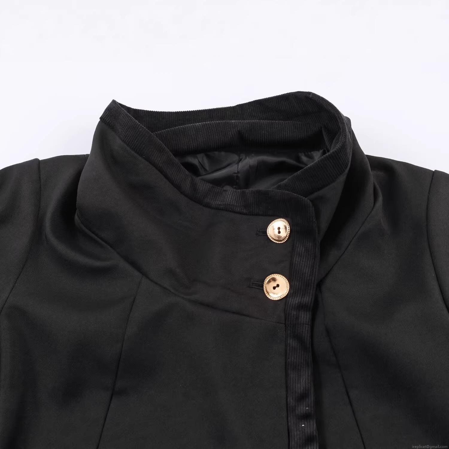 • Women's Autumn Stand Collar Short Double Breasted Jacket Fashion Black Corduroy Patchwork Coat With Gold Buttons Elegant Street Style Outerwear
