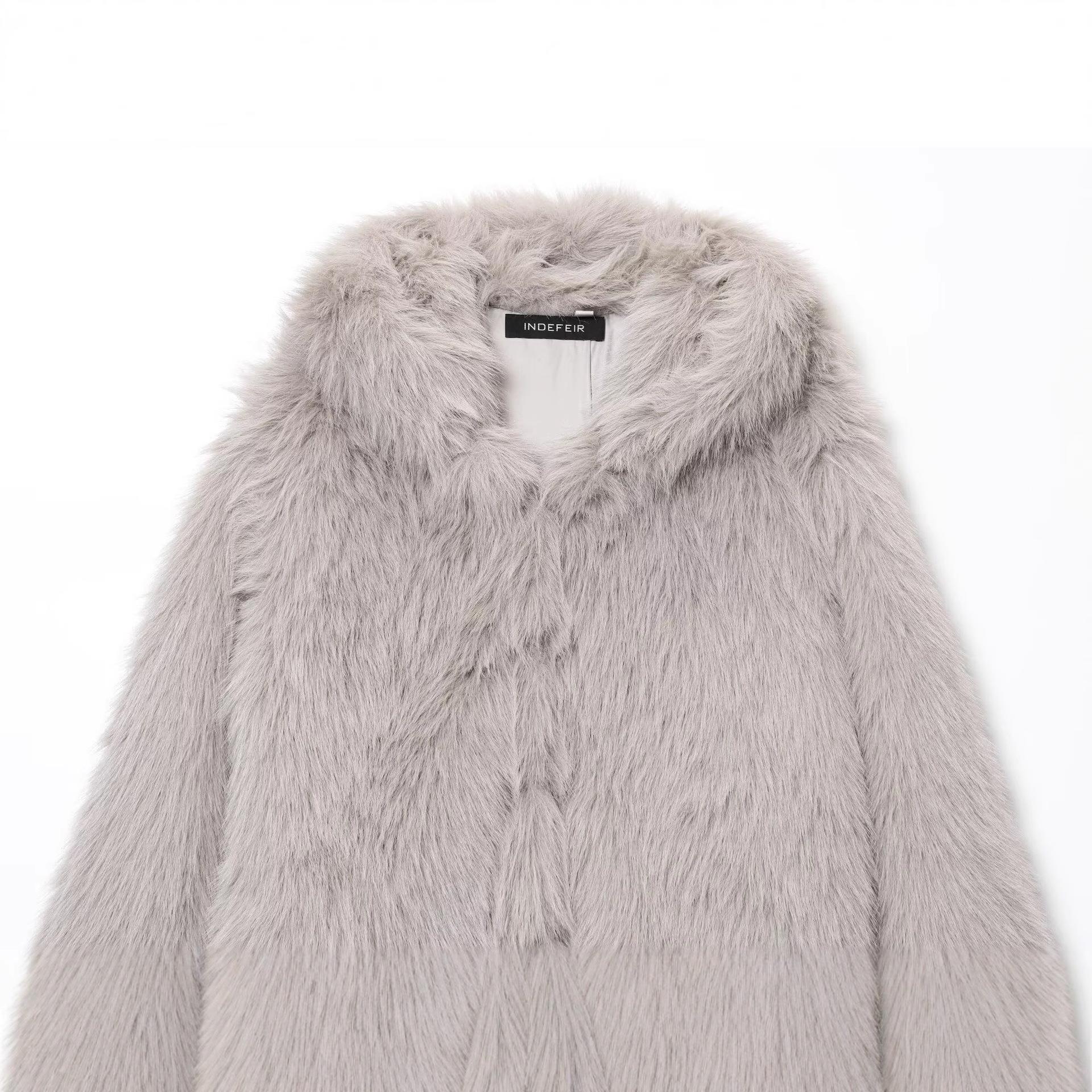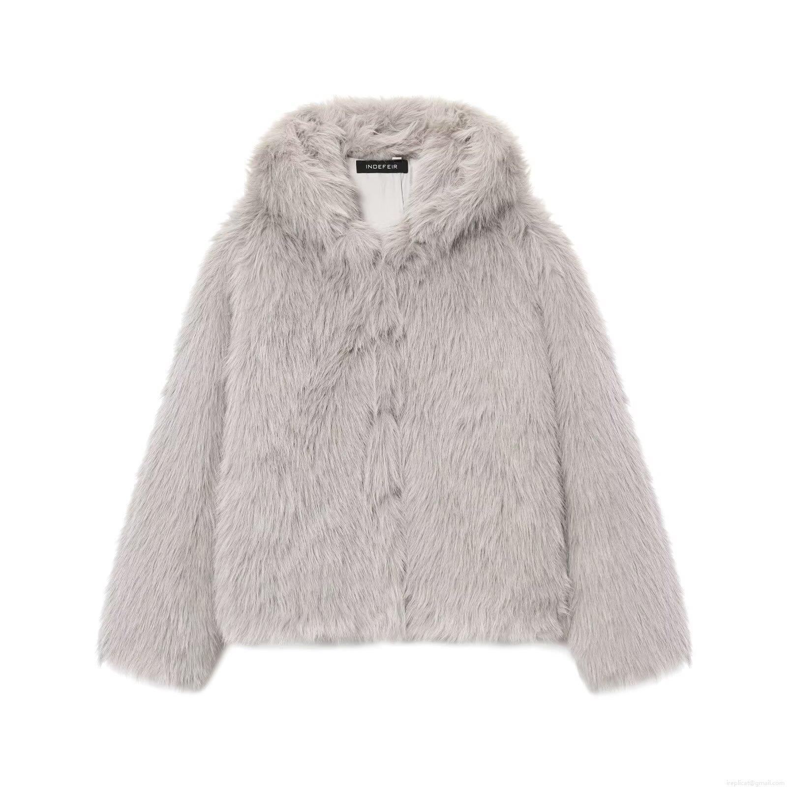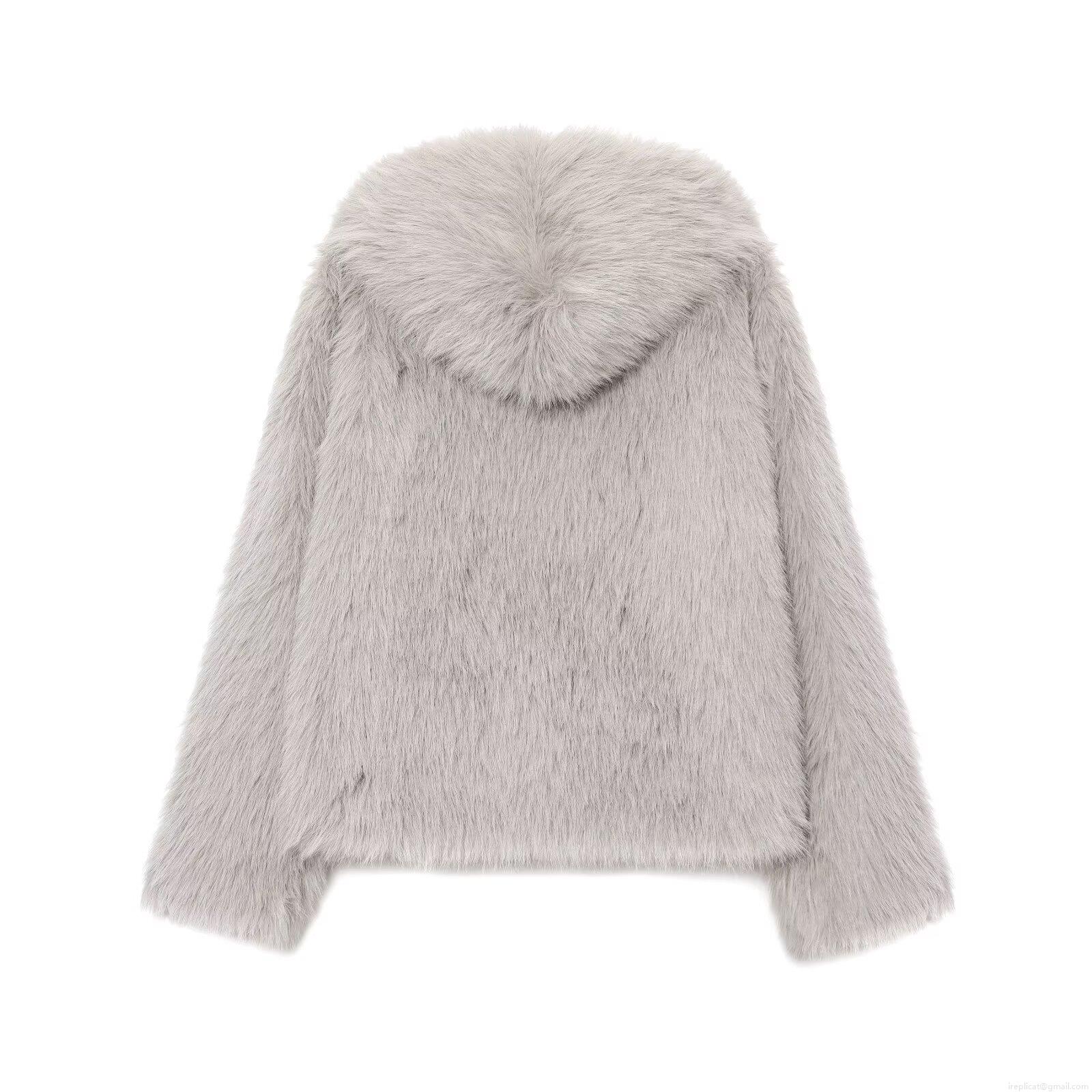 • Women's Casual Fashion Light Grey Faux Fur Hooded Jacket Thick Warm Long Sleeve Winter Coat For Party Daily Outerwear