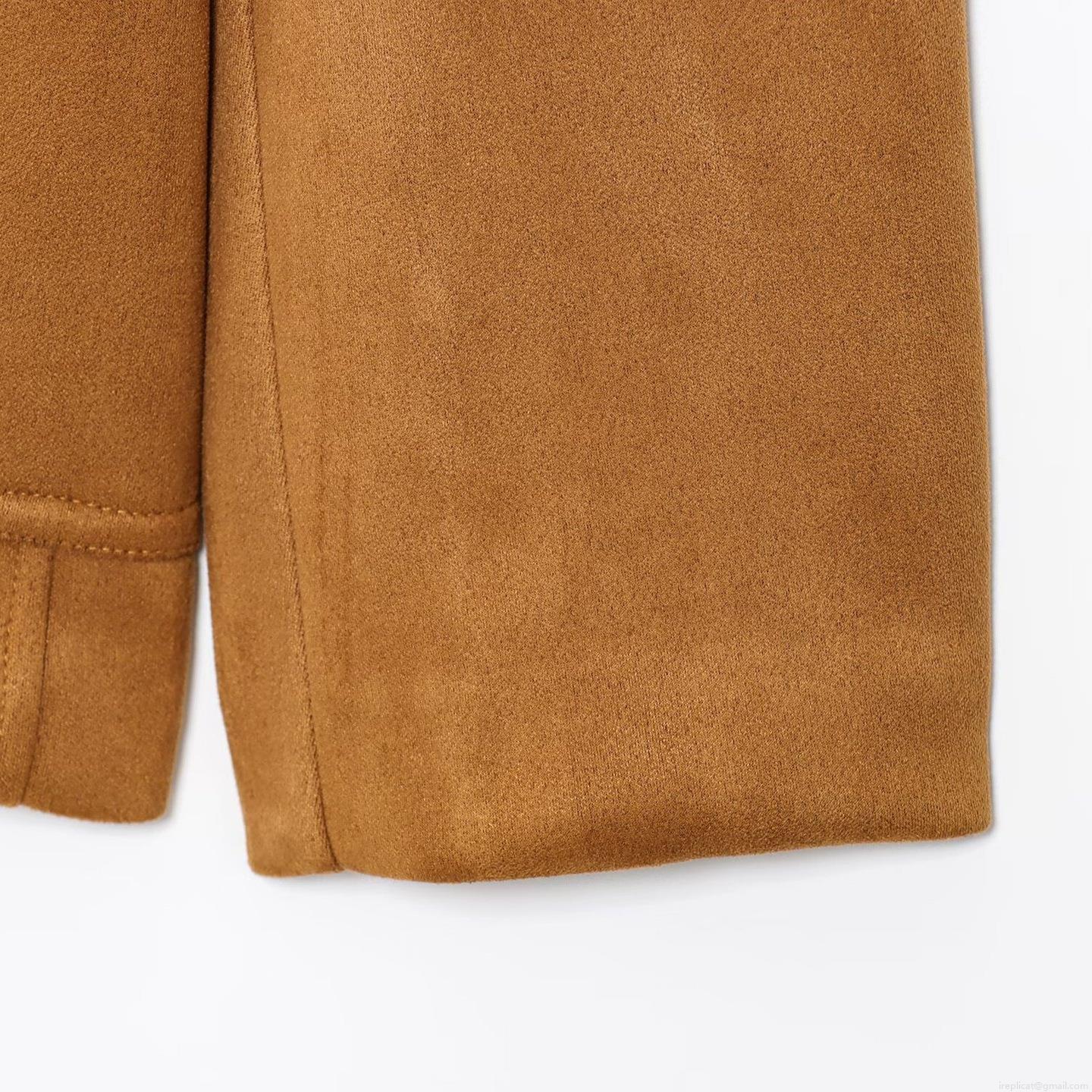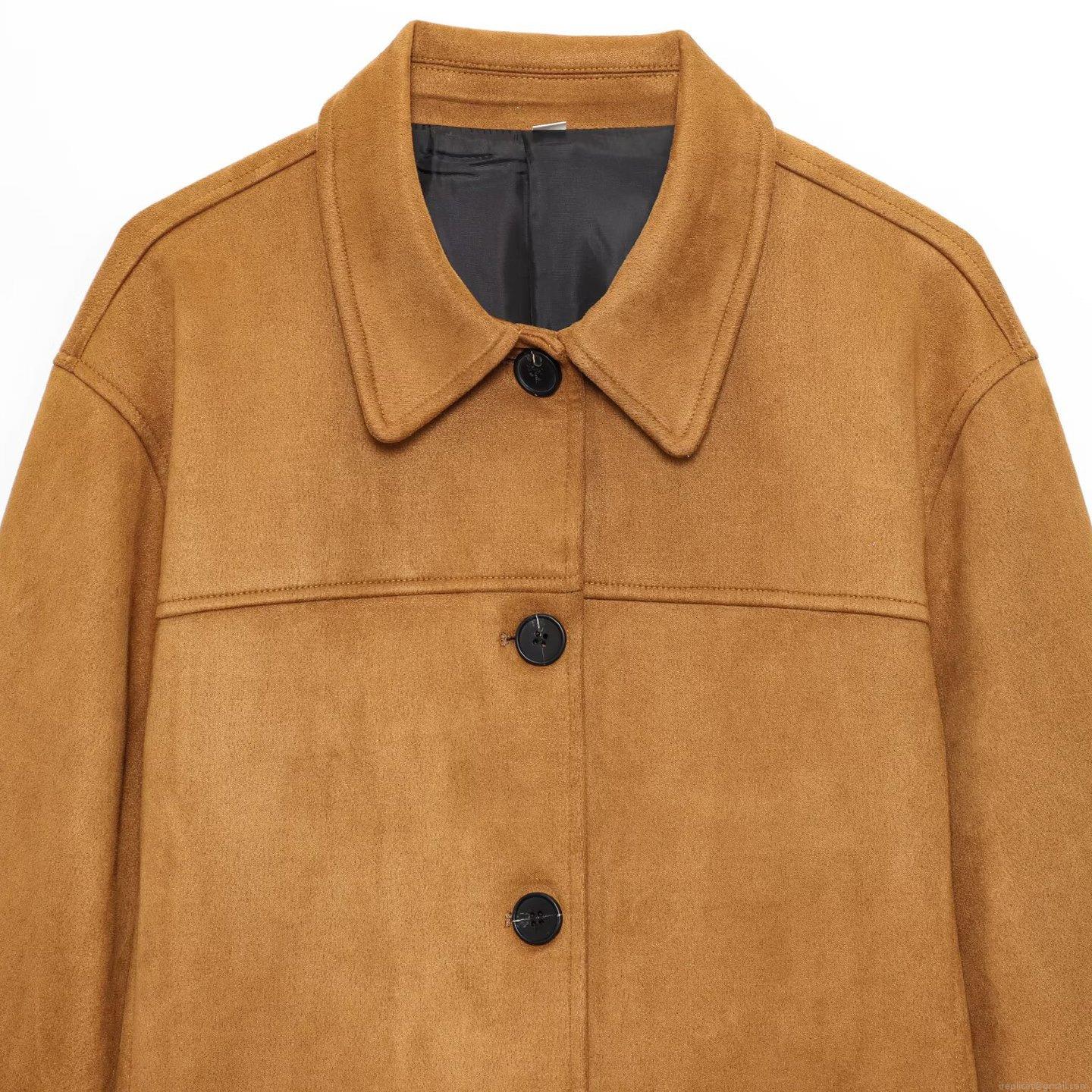 Women's Casual Faux Suede Jacket Fashion Lapel Single Breasted Loose Fit Outerwear With Pockets Solid Color Polyester Long Sleeve Coat For Daily Commute