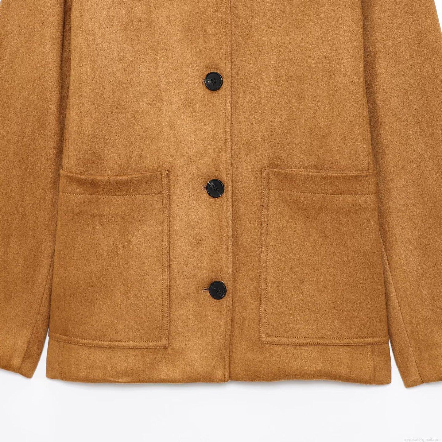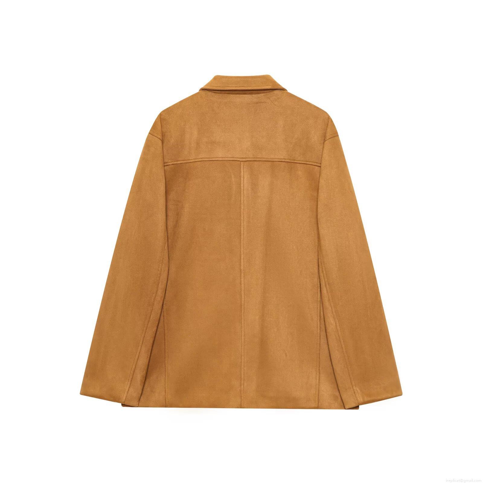 • Women's Casual Faux Suede Jacket Fashion Lapel Single Breasted Loose Fit Outerwear With Pockets Solid Color Polyester Long Sleeve Coat For Daily Commute