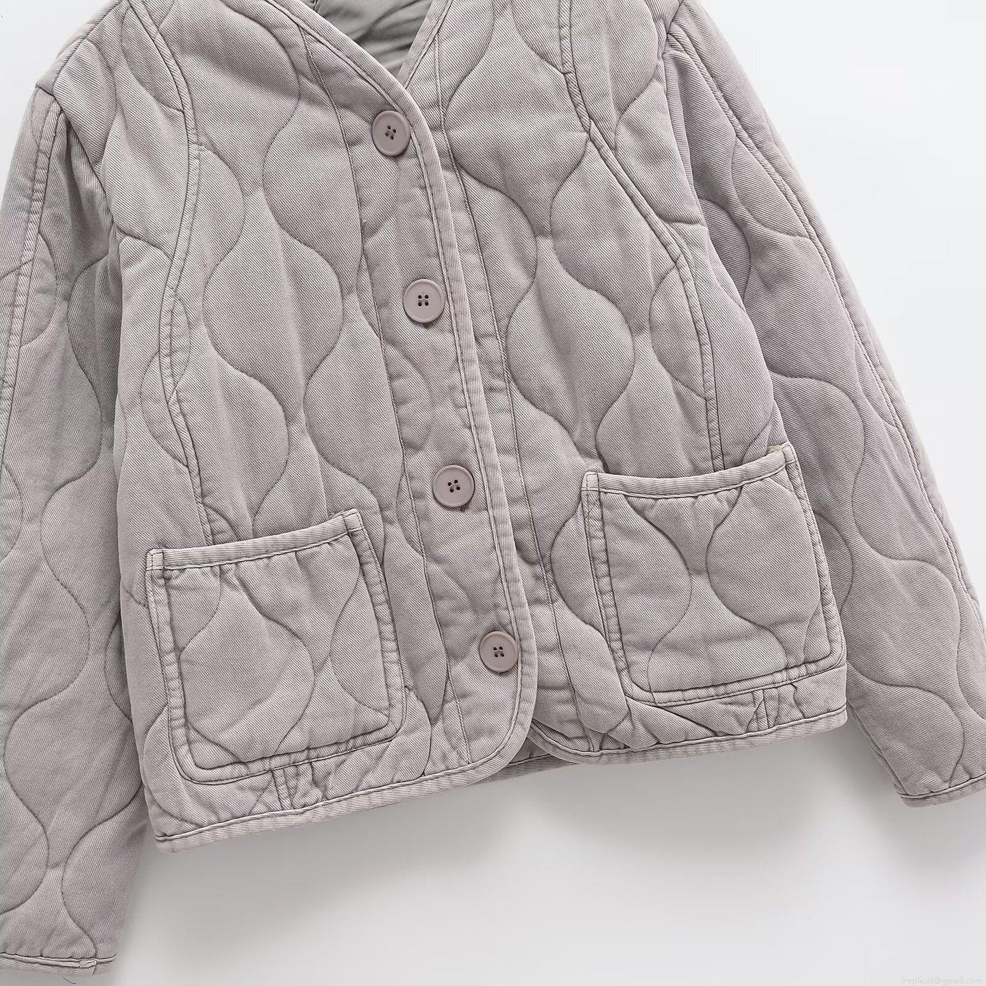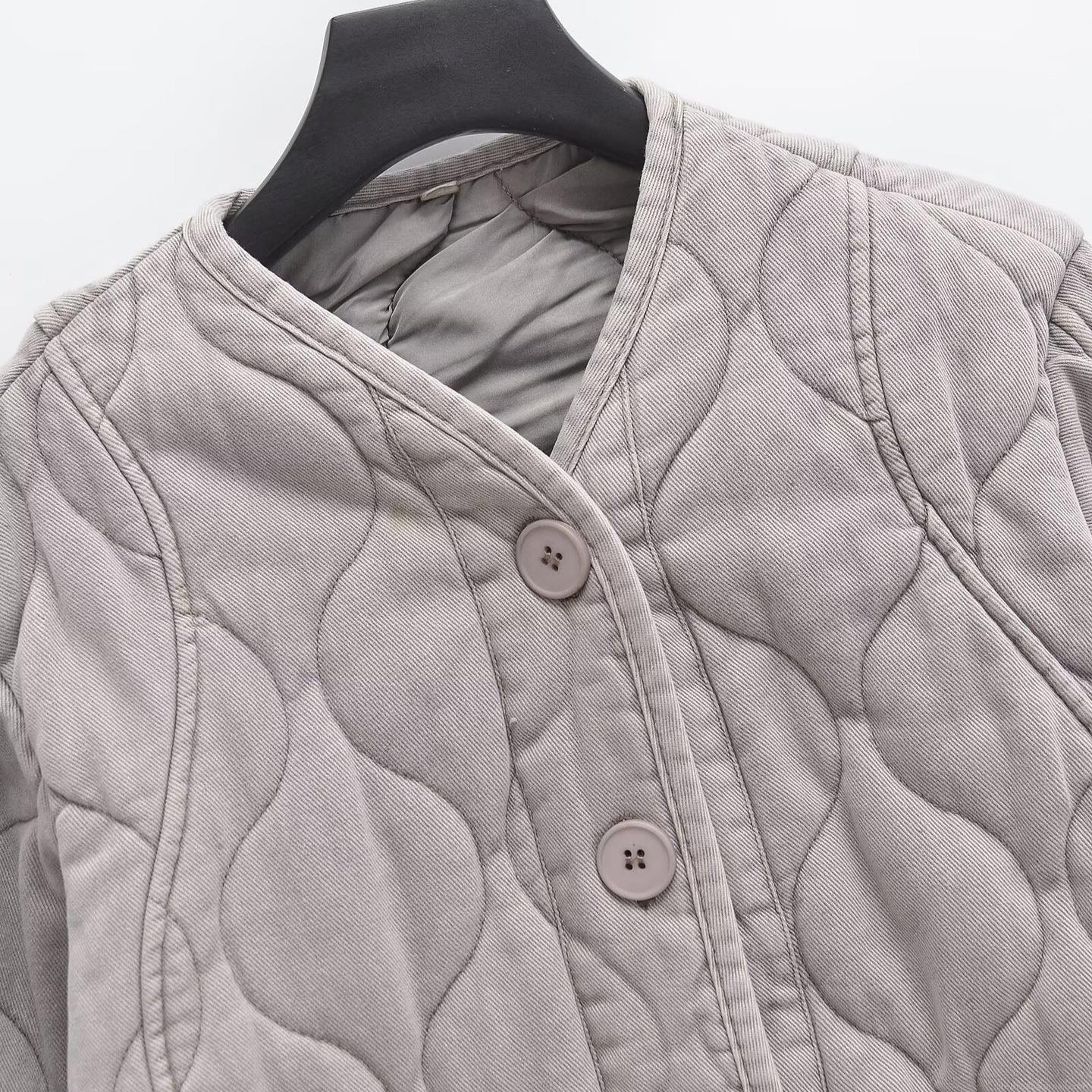 Solid Color, Pocket, Single-breasted, Gourd Pattern Quilting, Water Ripple Quilting