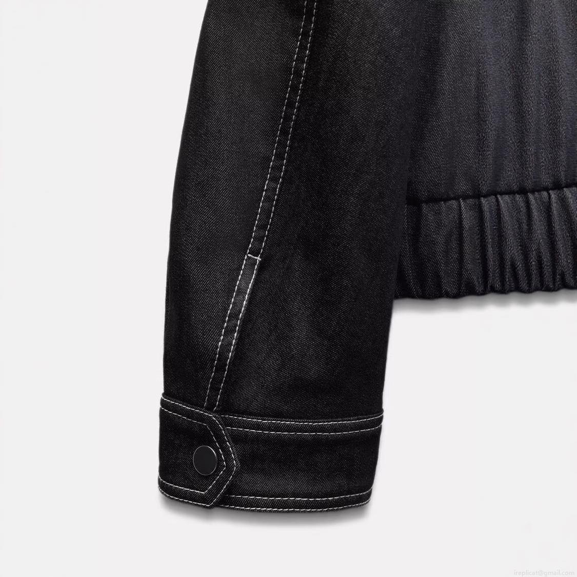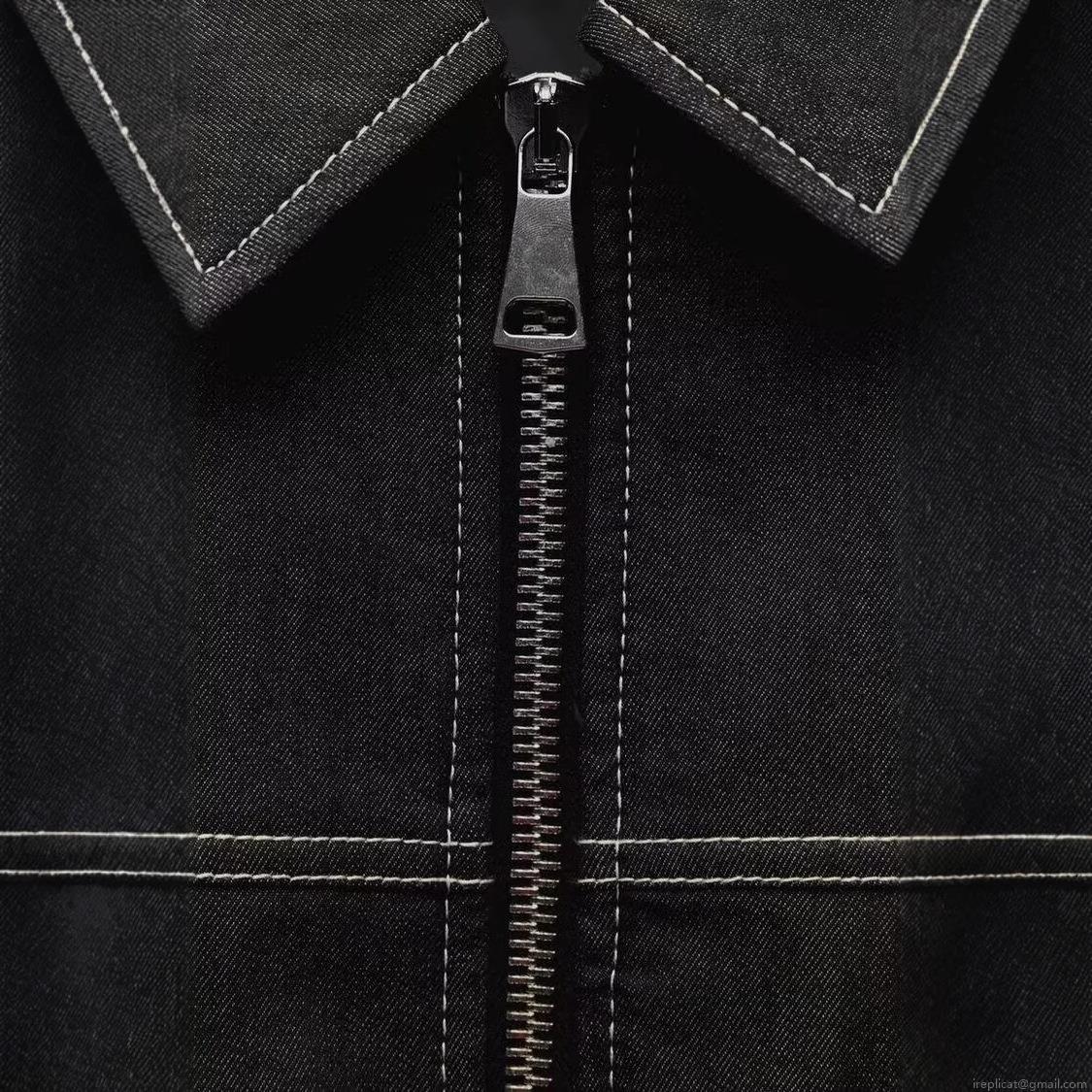 • Women's Casual Loose Denim Jacket With White Contrast Stitching Pocket Zipper Workwear Style Black Cotton Blend Outerwear For Daily Streetwear Fall Spring