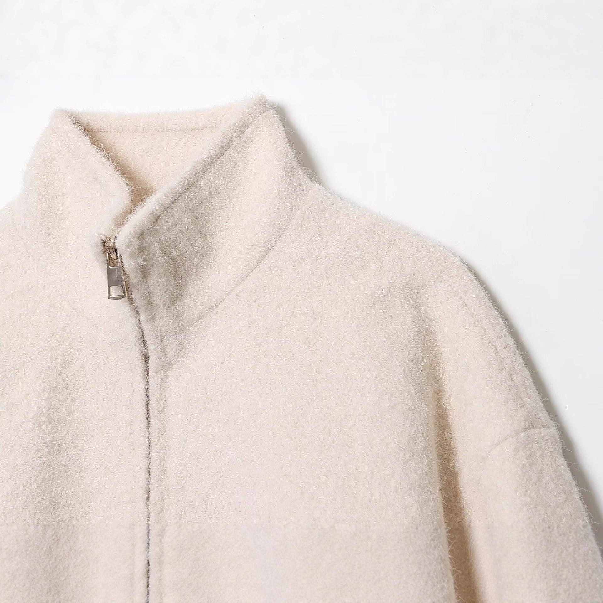 • Women's Casual Loose Fleece Jacket Solid Color Stand Collar Zipper Sherpa Baseball Outerwear Autumn Winter Streetwear Coat