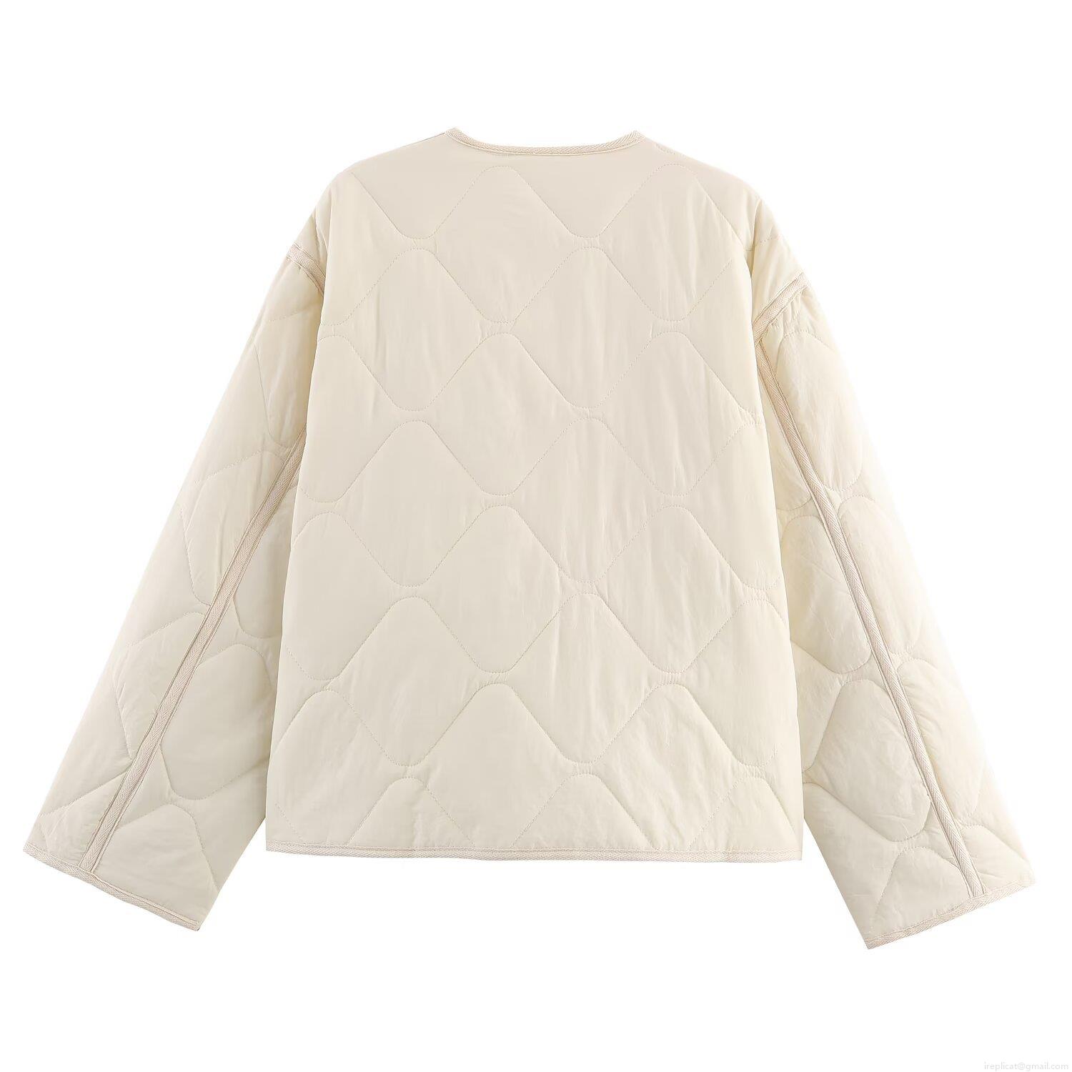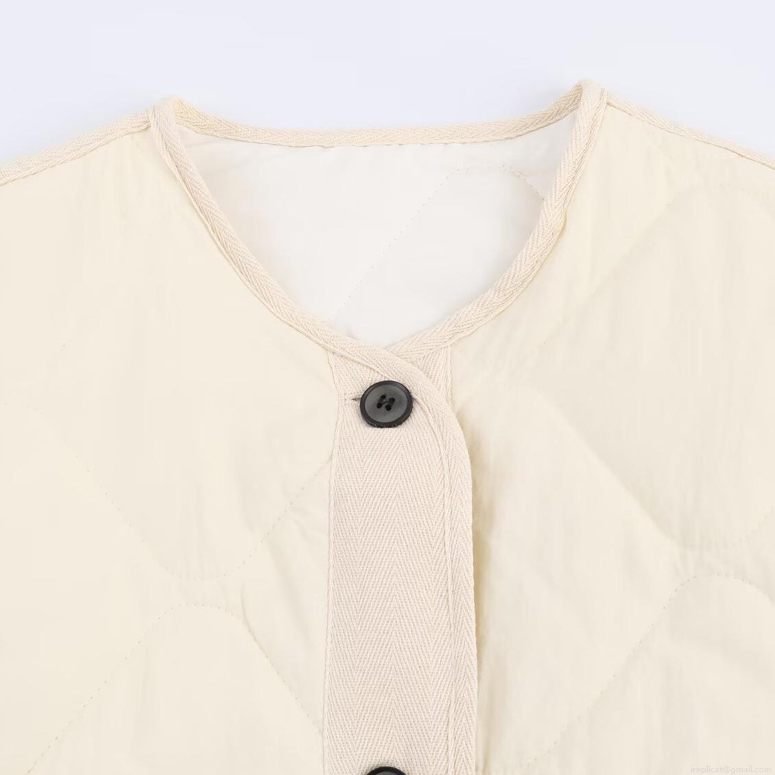 • Women's Casual Quilted Lightweight Cotton Jacket Casual Round Neck Single Breasted Padded Coat With Pockets Solid Color Outerwear For Autumn Winter Ladies
