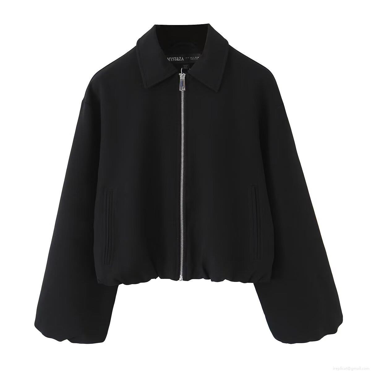 • Women's Casual Turn-down Collar Zipper Bomber Jacket Loose Fit Long Sleeve Puffy Oversized Solid Color Streetwear Outerwear Autumn Coat For Women