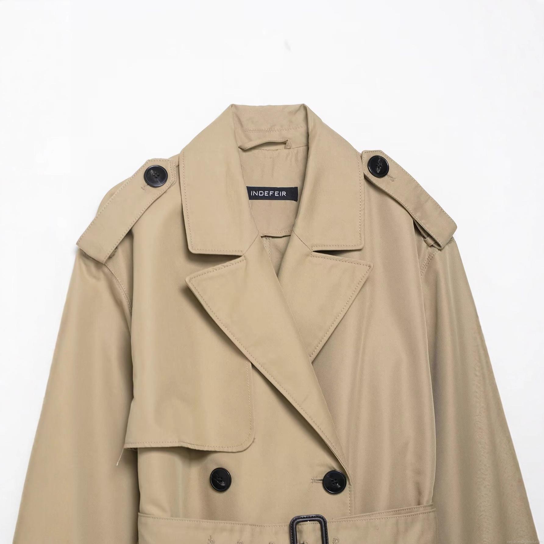 • Women's Classic Double Breasted Long Trench Coat High Density Twill Fabric With Belt Epaulettes British Style Casual Windbreaker Outerwear