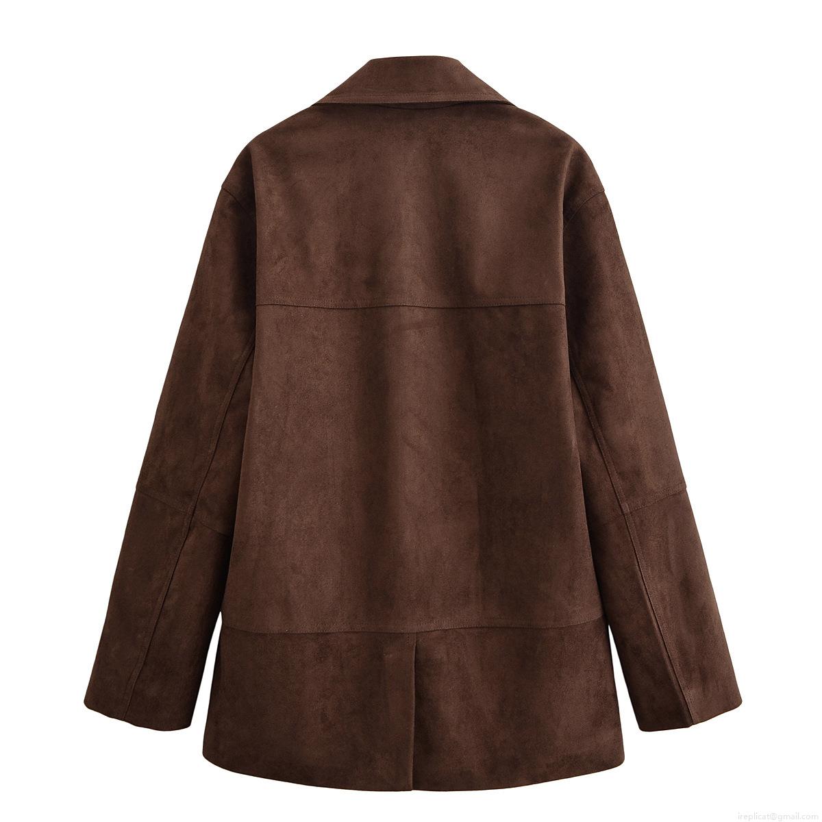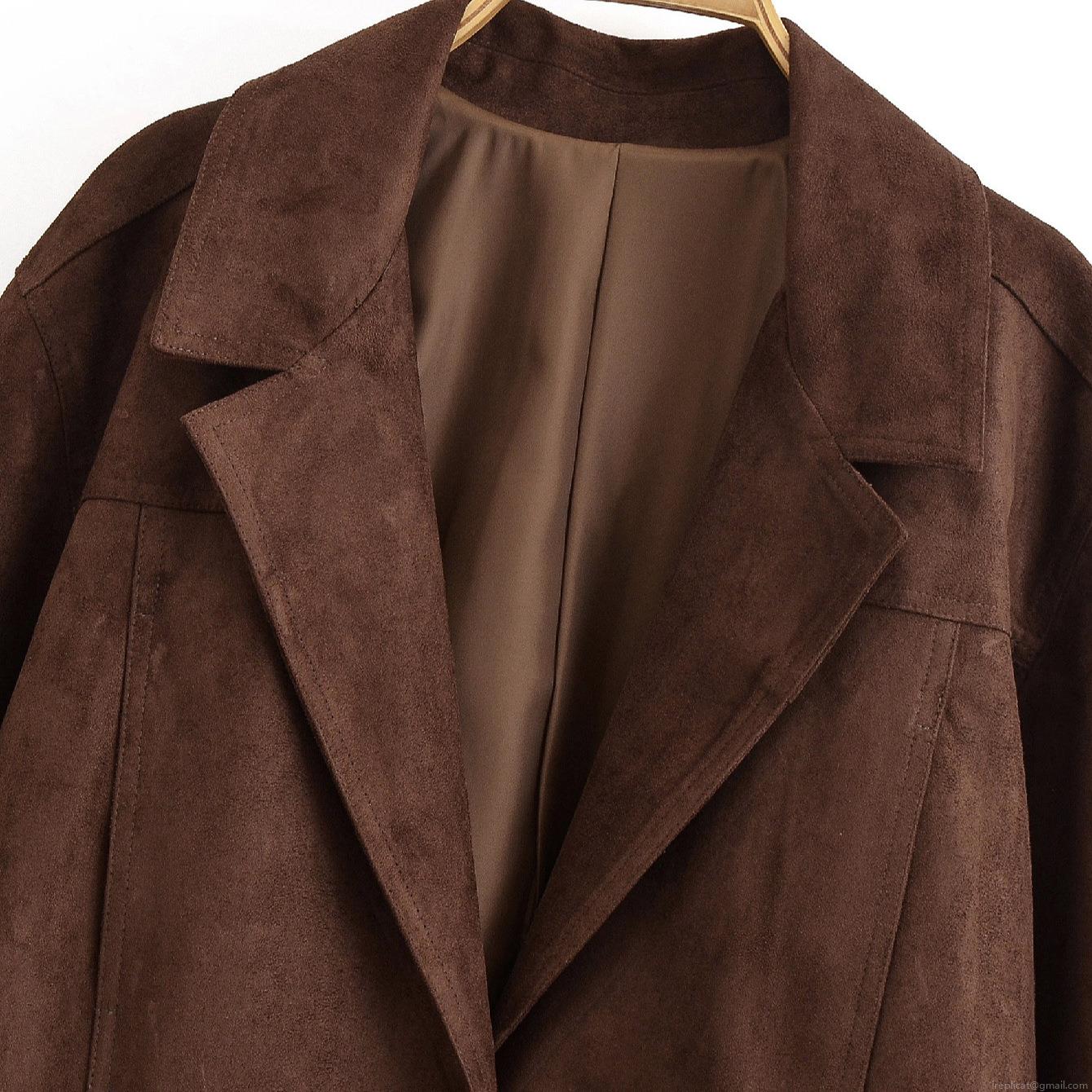 • Women's Classic Suit Collar Faux Suede Jacket Solid Color Single Breasted Commuter Outerwear for Office Elegant Long Sleeve Blazer Coats Women