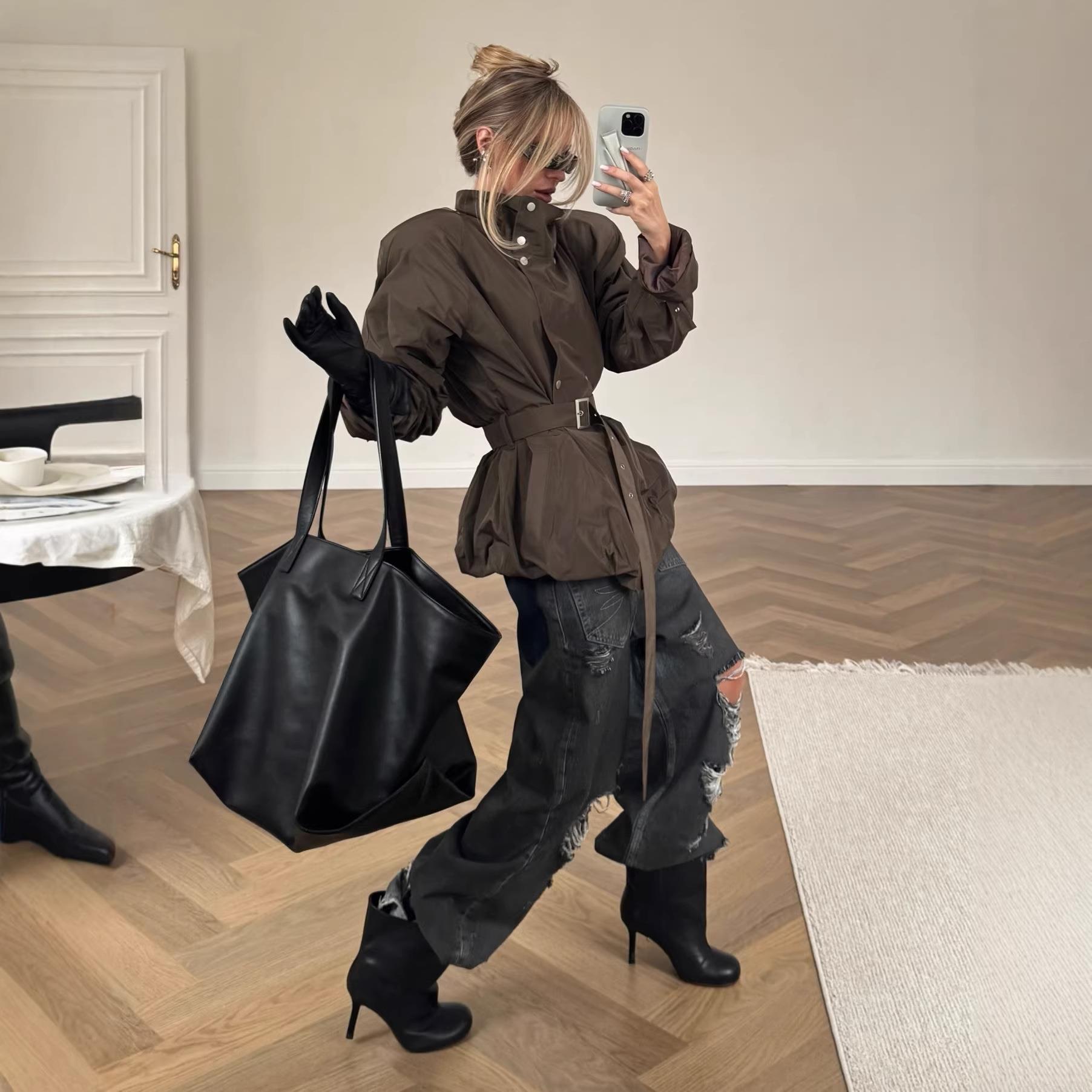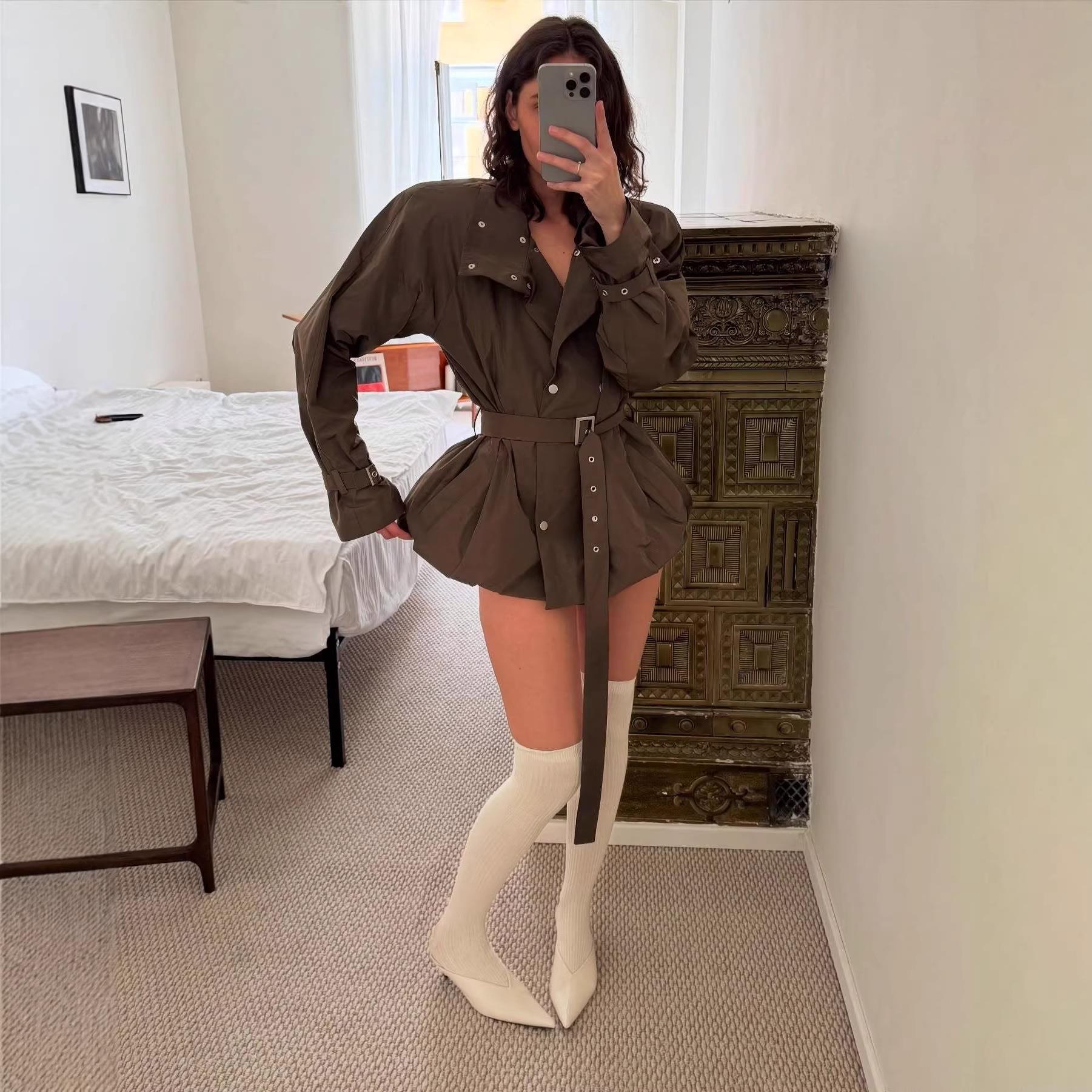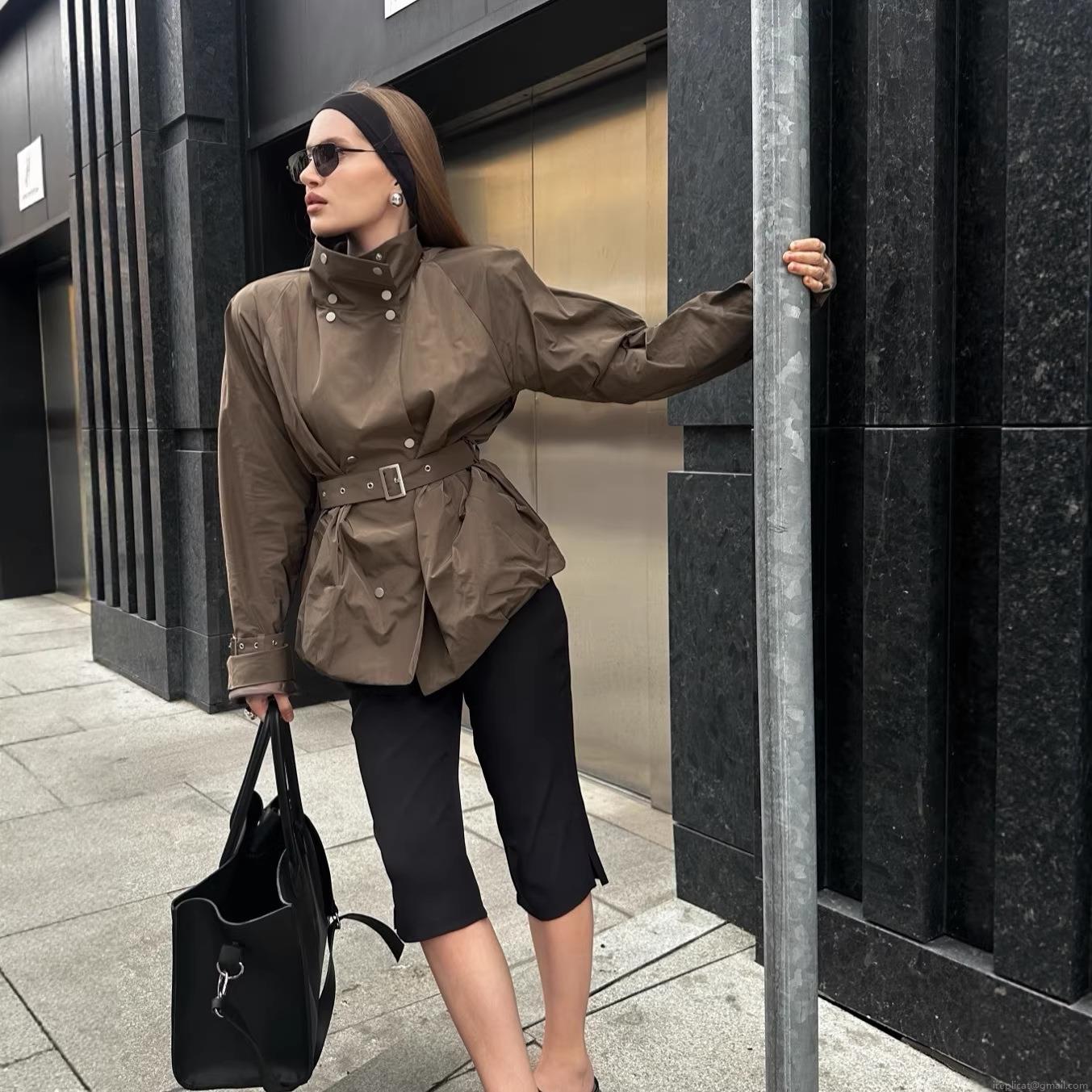 • Women's Double Breasted Short Trench Coat Jacket With Belt 100% Polyester Stand Collar Solid Color Streetwear Outerwear For Autumn Winter Ladies