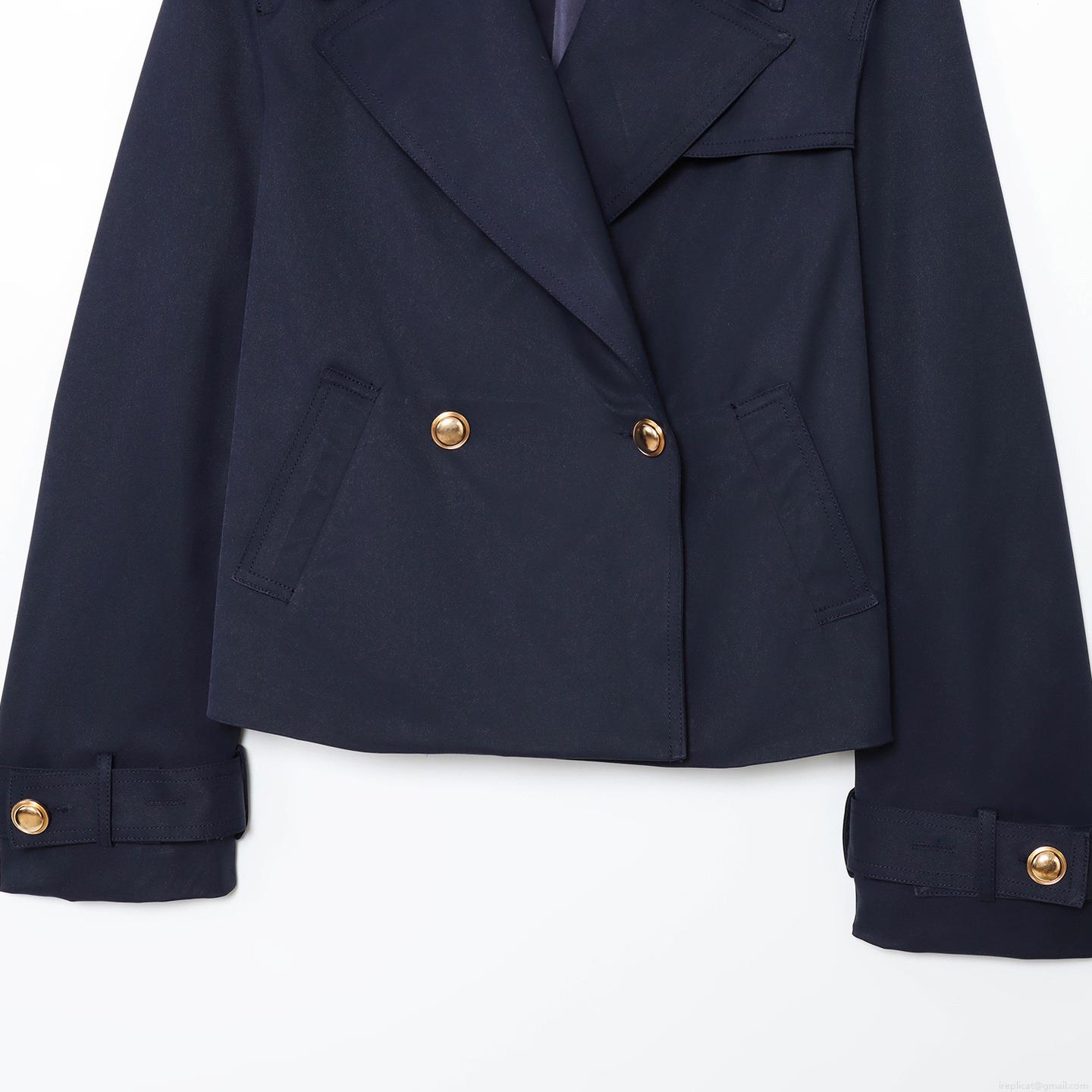 • Women's Double Breasted Short Trench Jacket Navy Blue Polyester Coat with Gold Metal Buttons Elegant Office Lady Outerwear