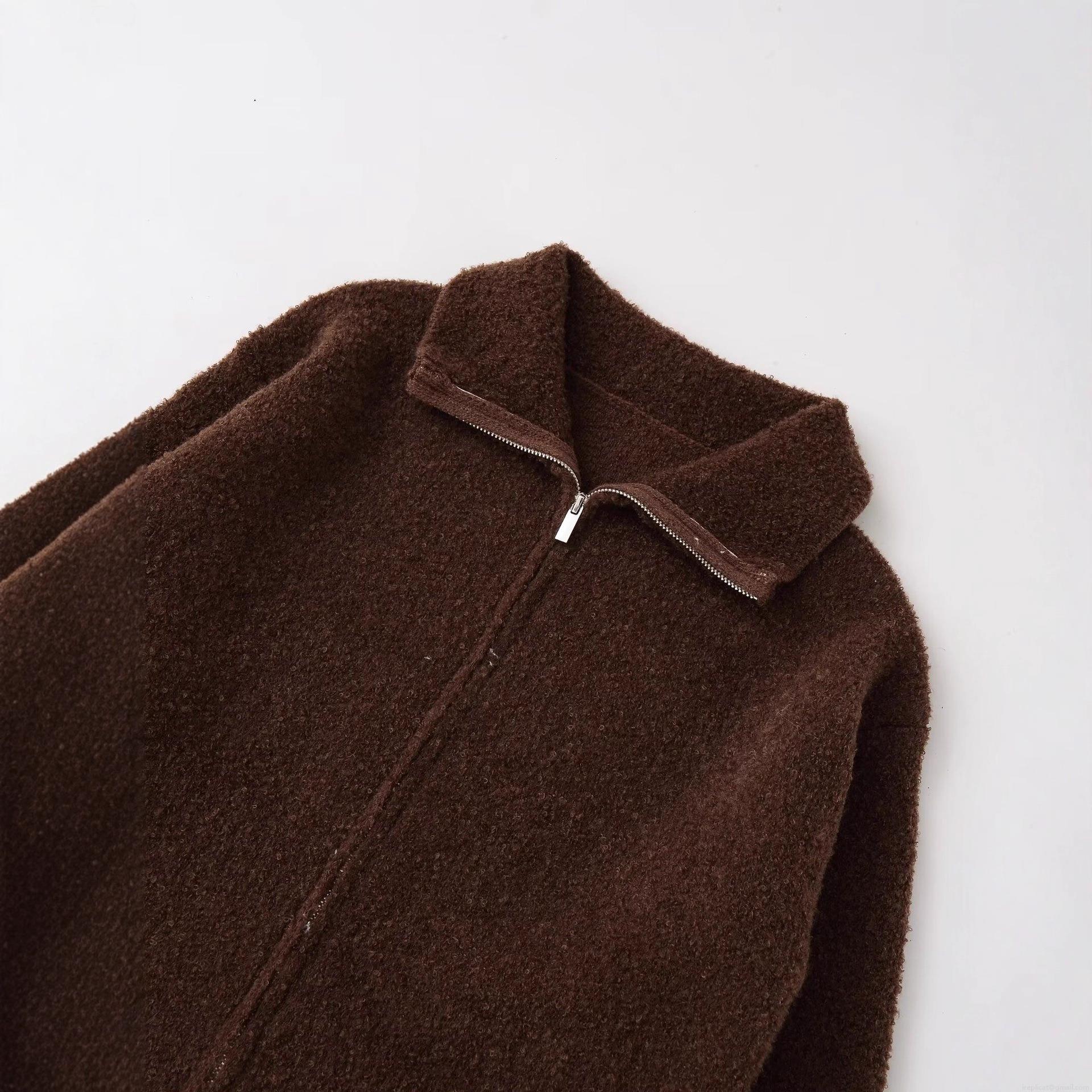 • Women's Double Zipper Fleece Jacket Stand Collar Solid Color Long Sleeve Loose Sherpa Coat Streetwear Outerwear For Autumn Winter